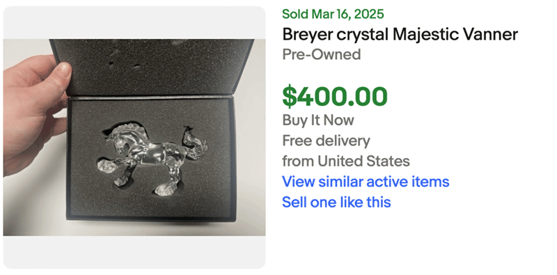 Crystal Gypsy Vanner; approximately 4″ high. Equestral Crystalworks collection