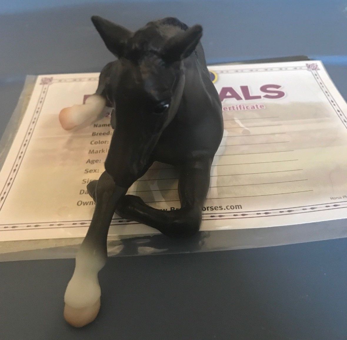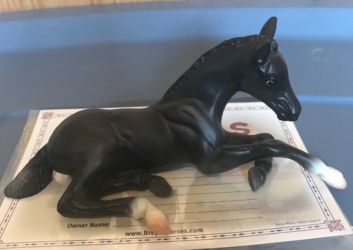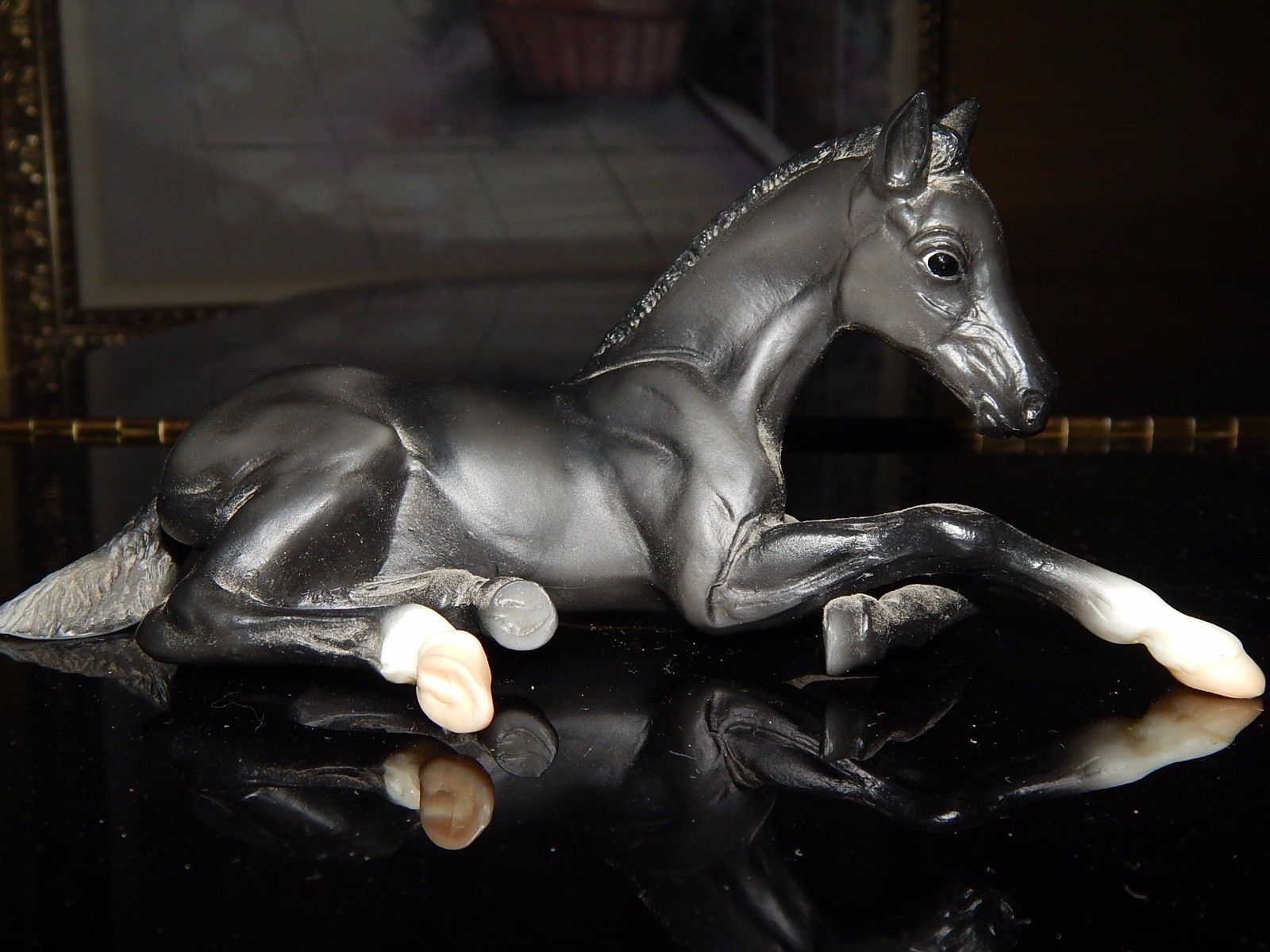 Matte black; lighter tail; eye-whites; 2 white socks; Color Crazy Event prize model