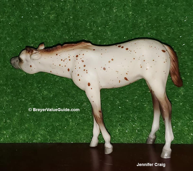 Matte leopard appaloosa; chestnut splash spots; chestnut mane and tail; Sears SR – with Grazing Mare