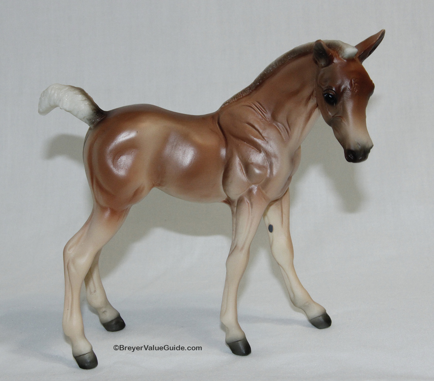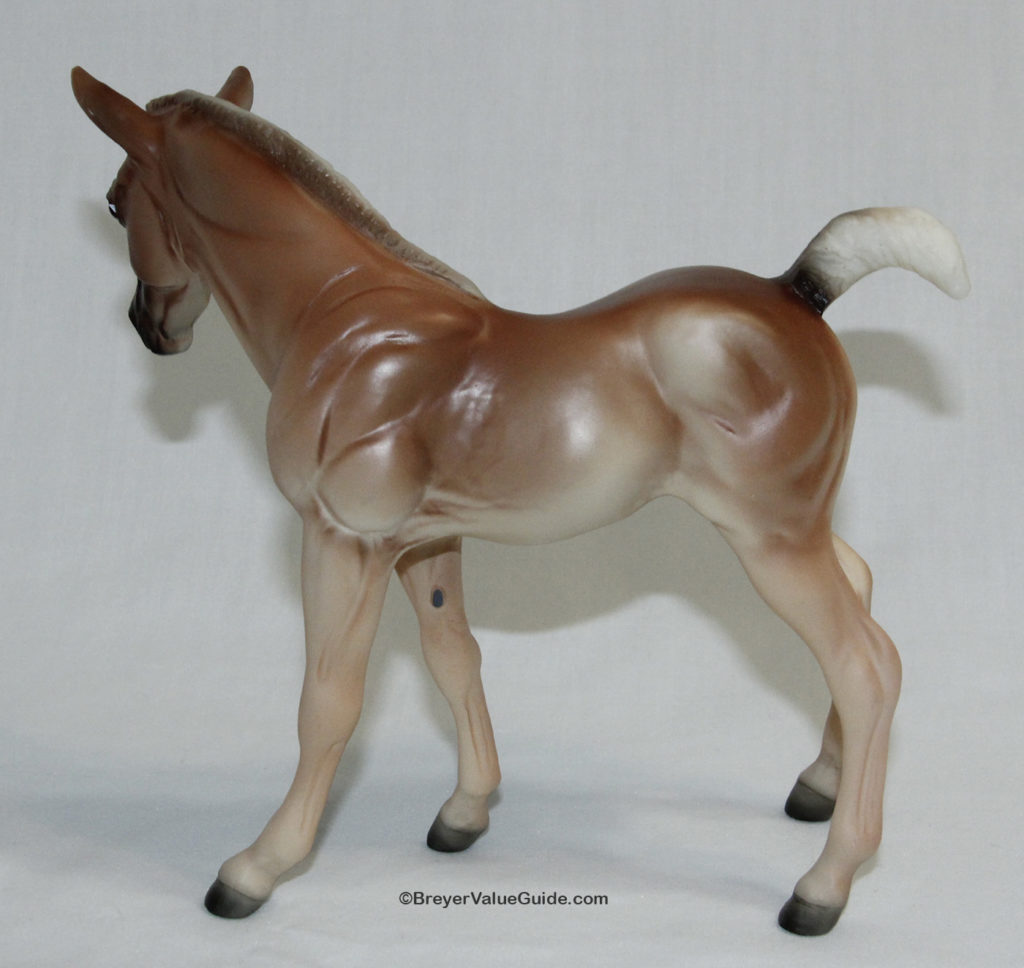 Matte chestnut; no blaze or socks; grey hooves; Color Crazy Collector’s Event – with National Show Horse