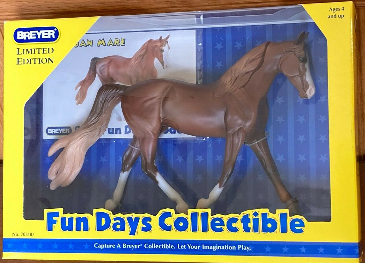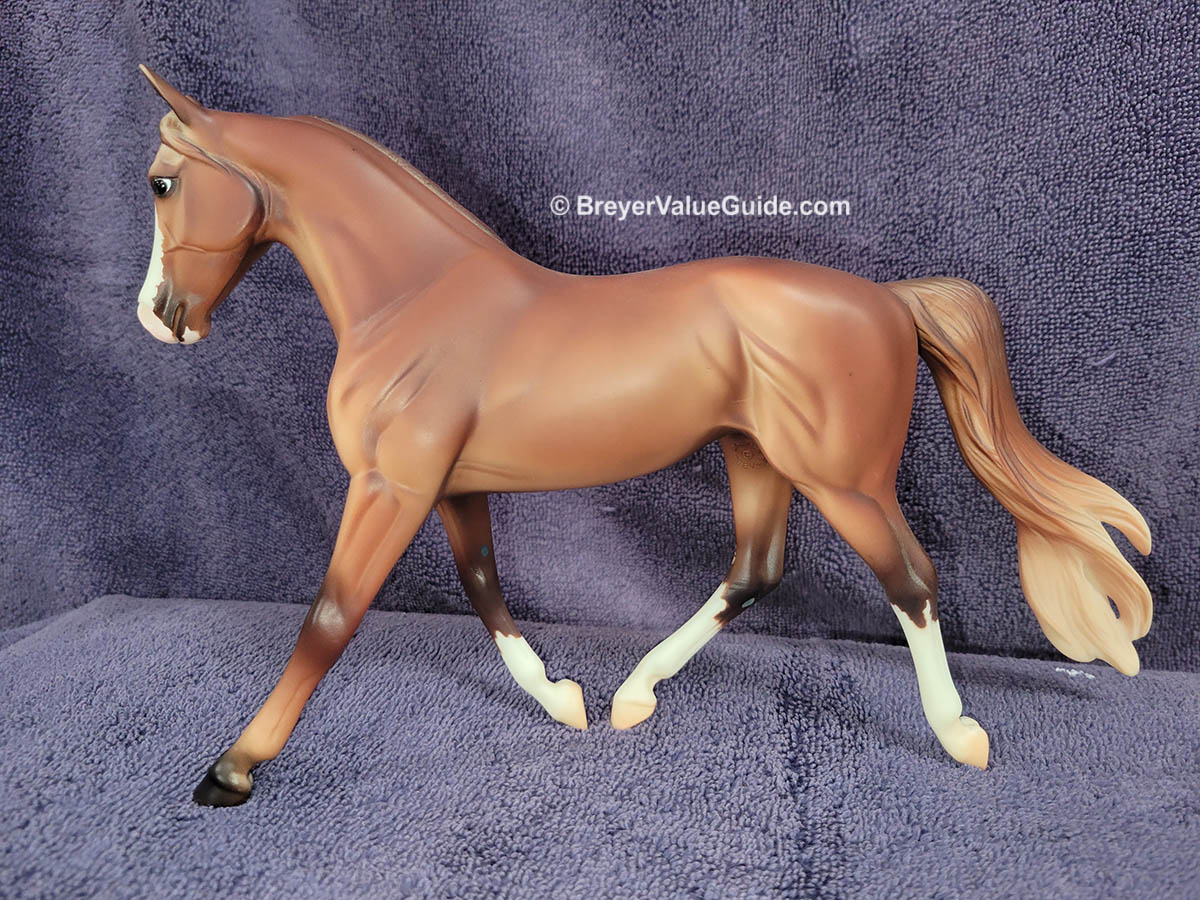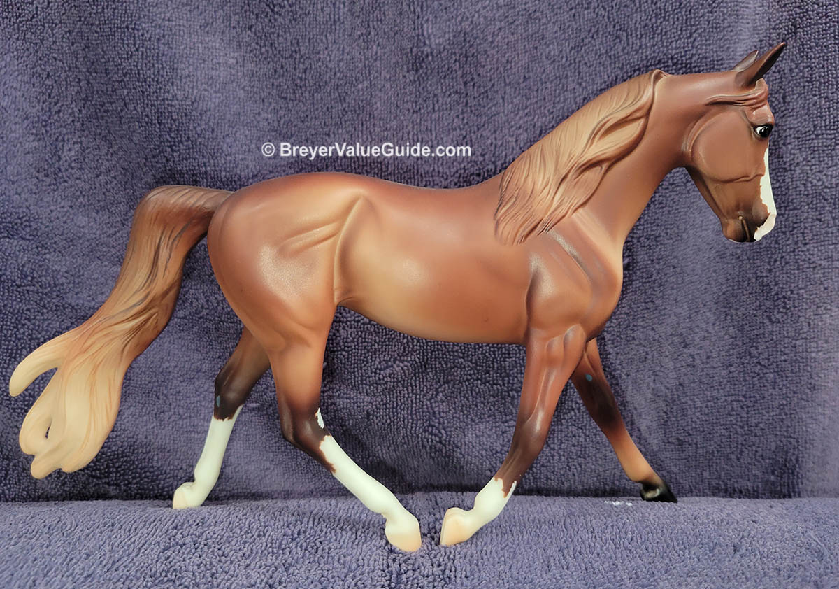 Matte shaded chestnut, flaxen mane and tail, wide blaze, 3 stockings, Breyer Fun Days SR