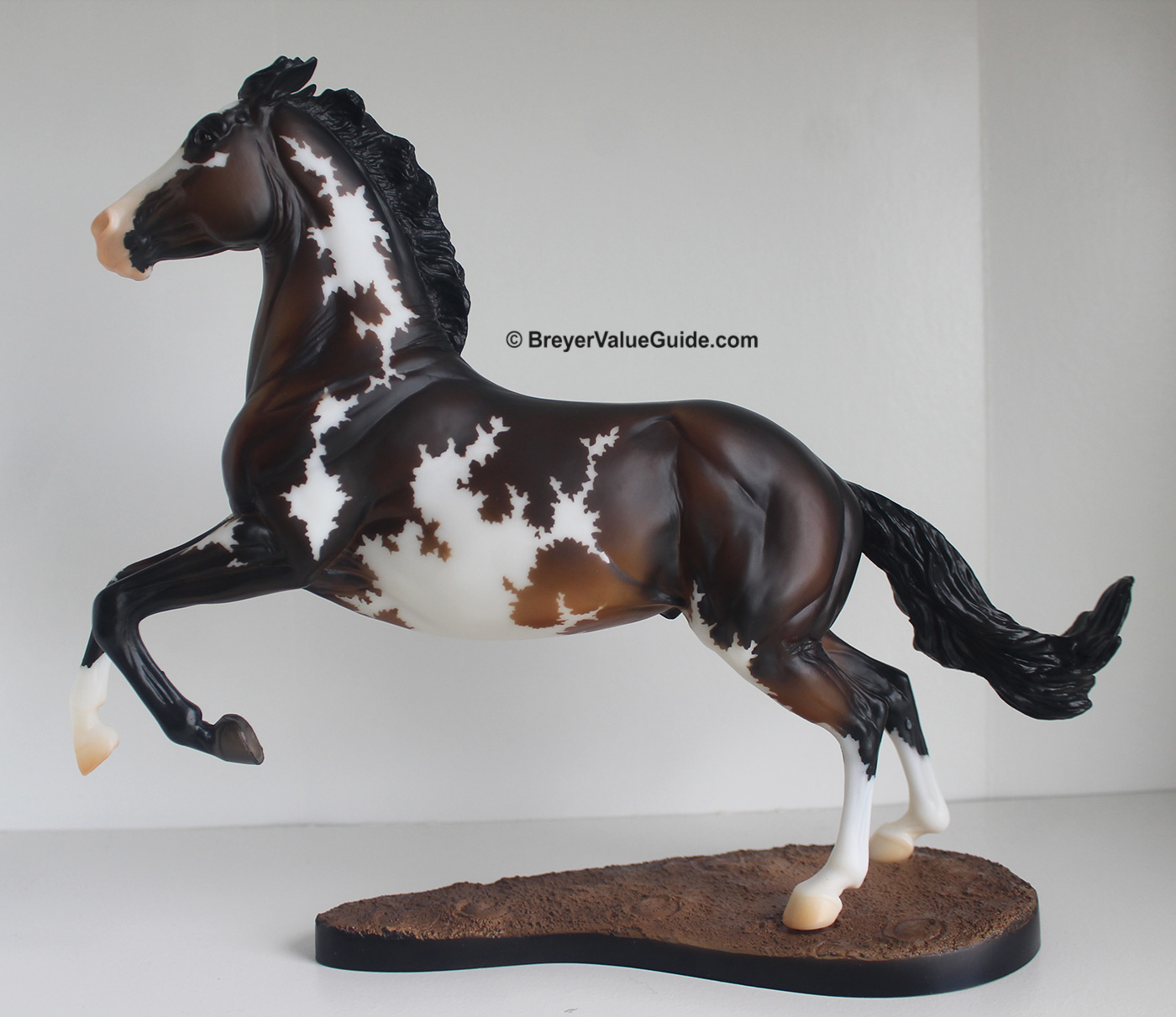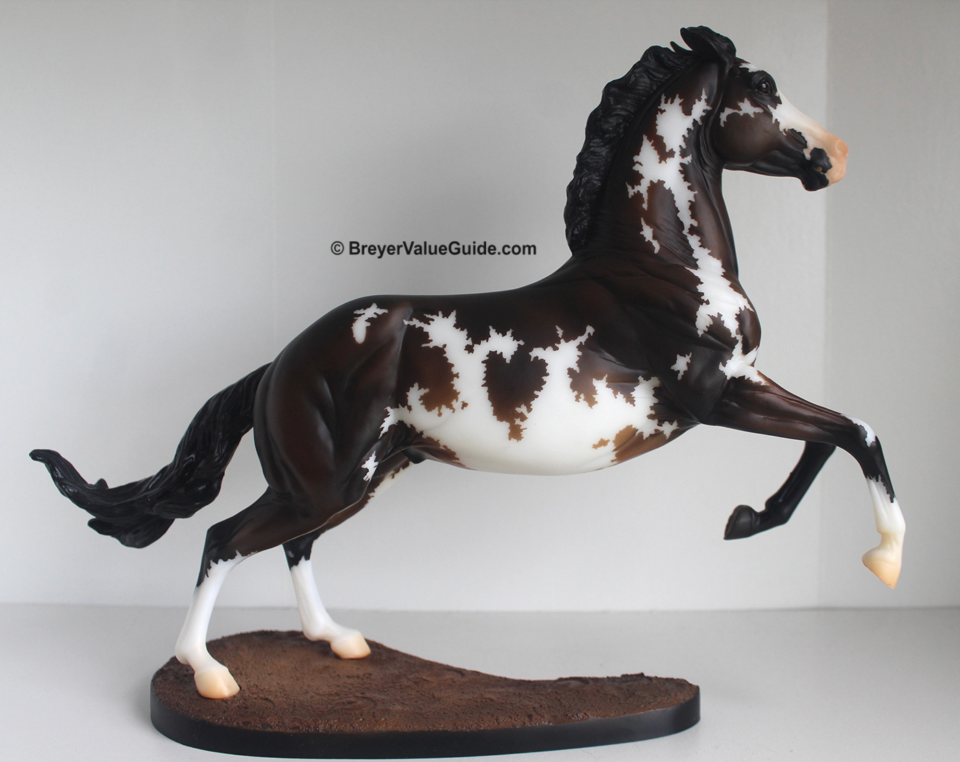 Matte brown bay pinto, stenciled bald face, 3 socks, brown base, BreyerFest SR, 1/1100 in seal bay