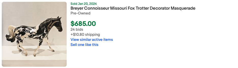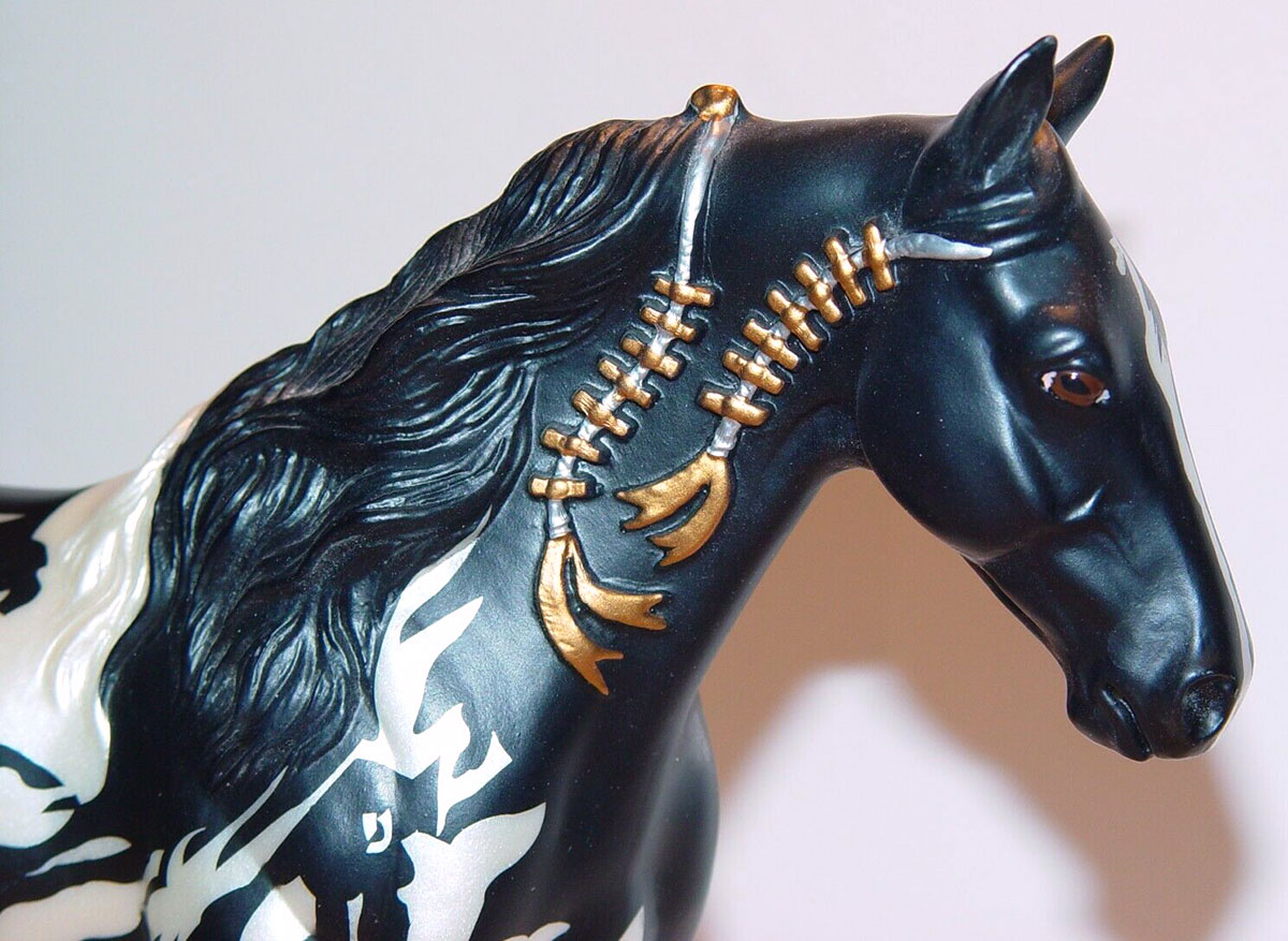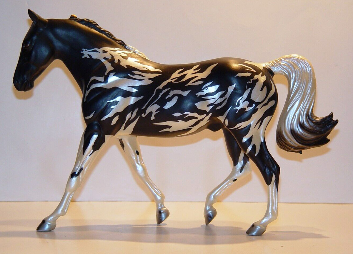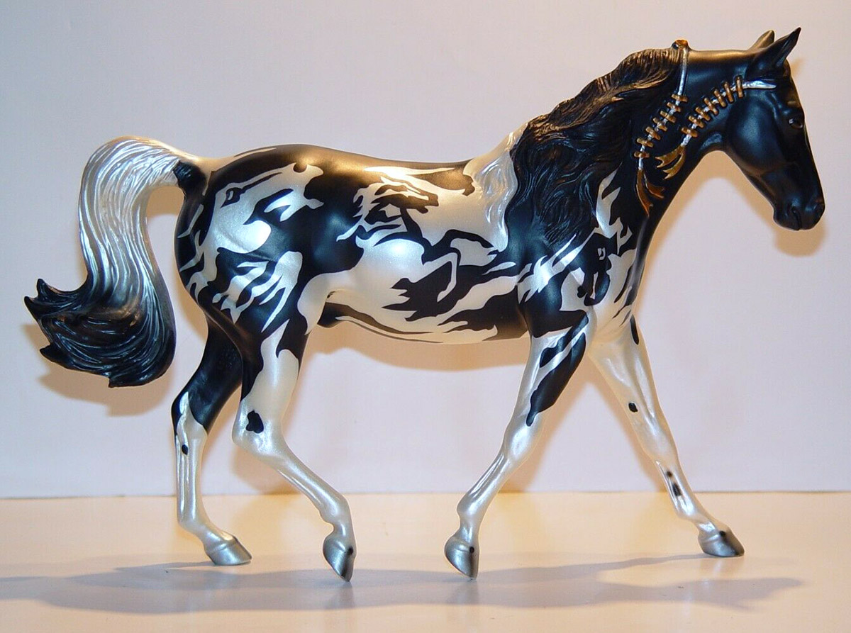 Glossy black and white pearl pinto with hidden images in pattern; silver/gold ribbons; Connoisseur SR; 1/350