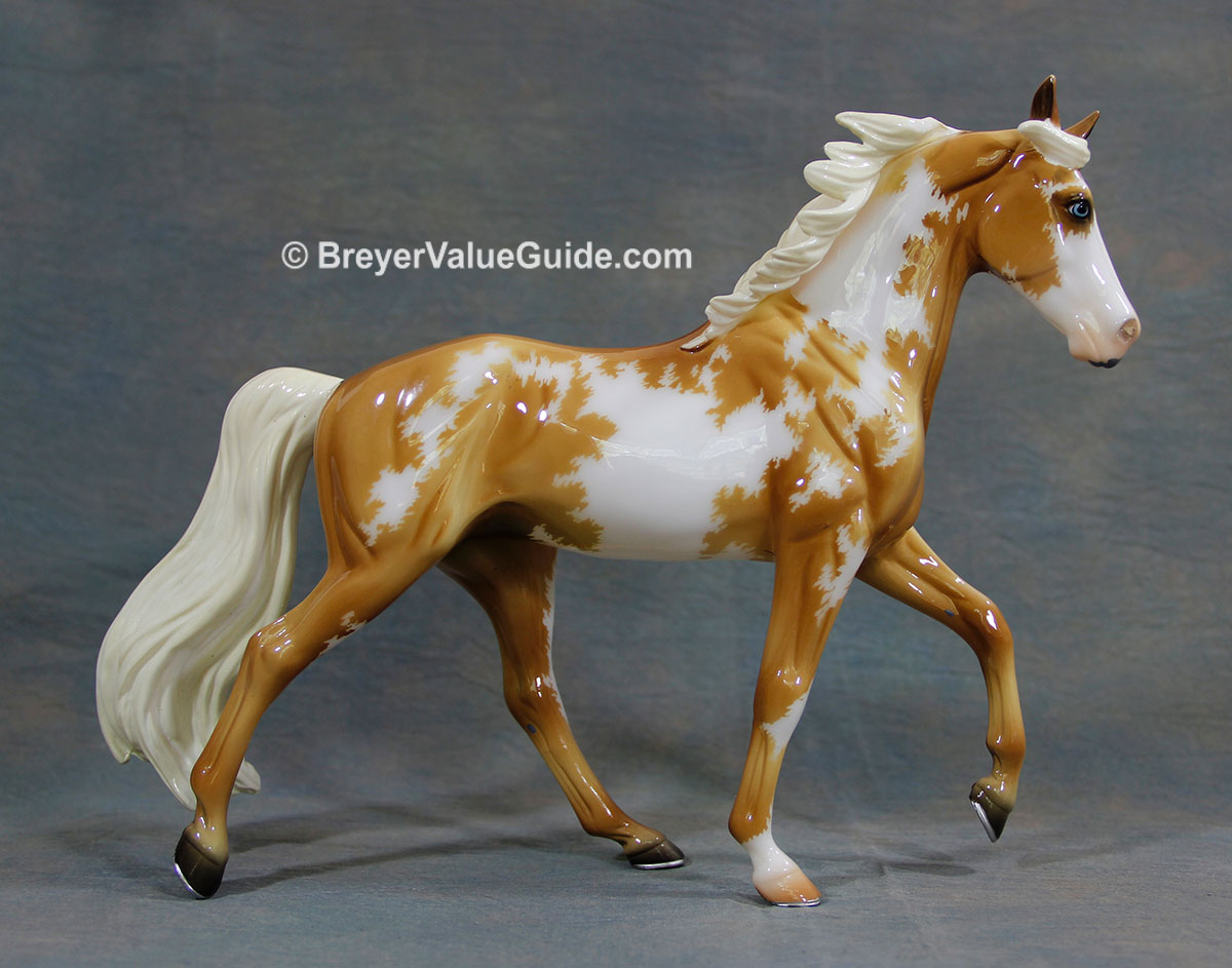 Glossy palomino pinto, stenciled bald face, 1 low sock, blue eyes, Birds of a Feather Series, Collector Club SR, 1/375