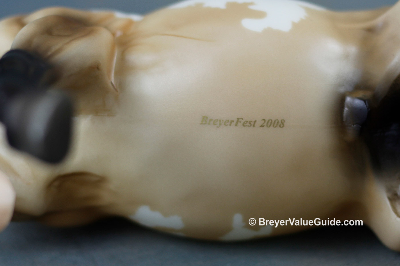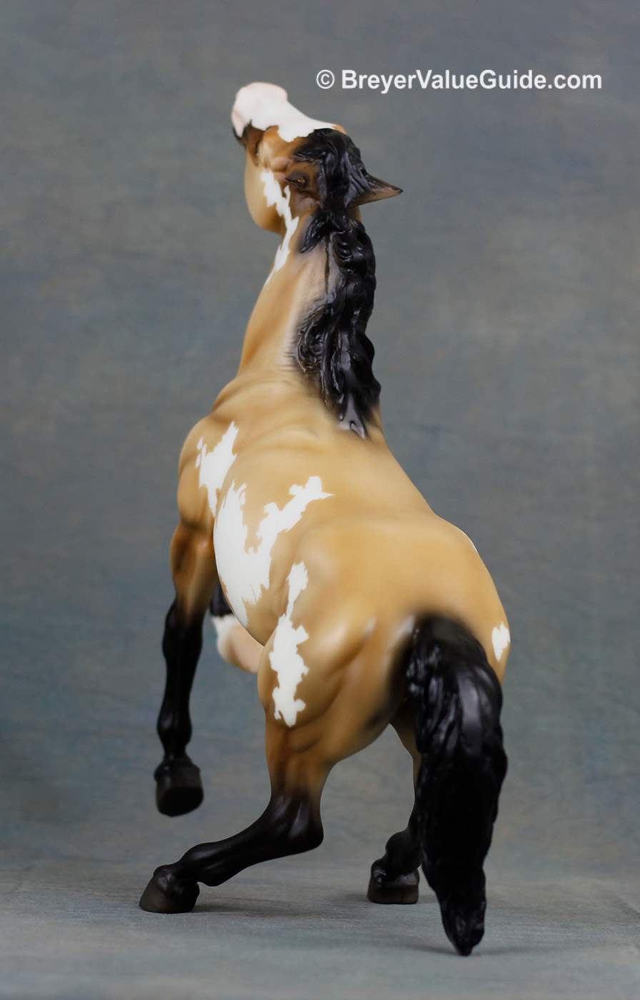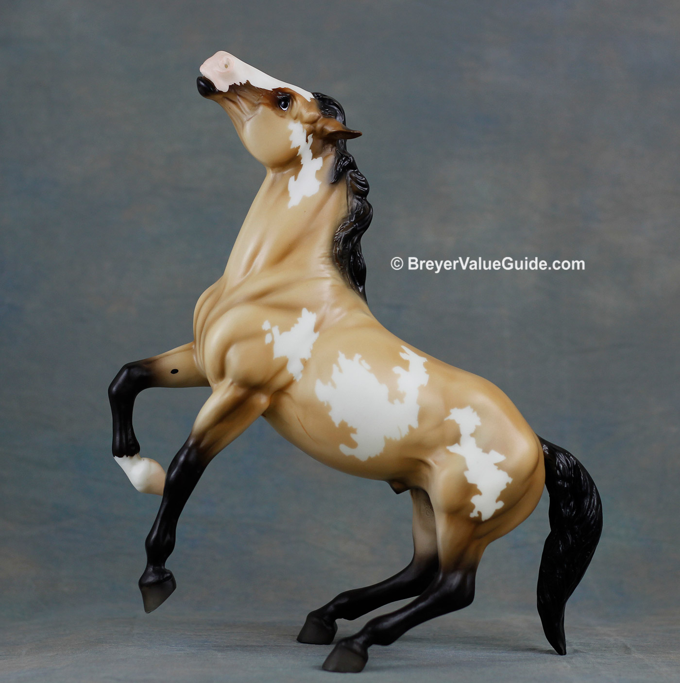Matte buckskin pinto; stenciled apron blaze; pink muzzle; eye whites; 1 front sock; BreyerFest SR; 1/1150