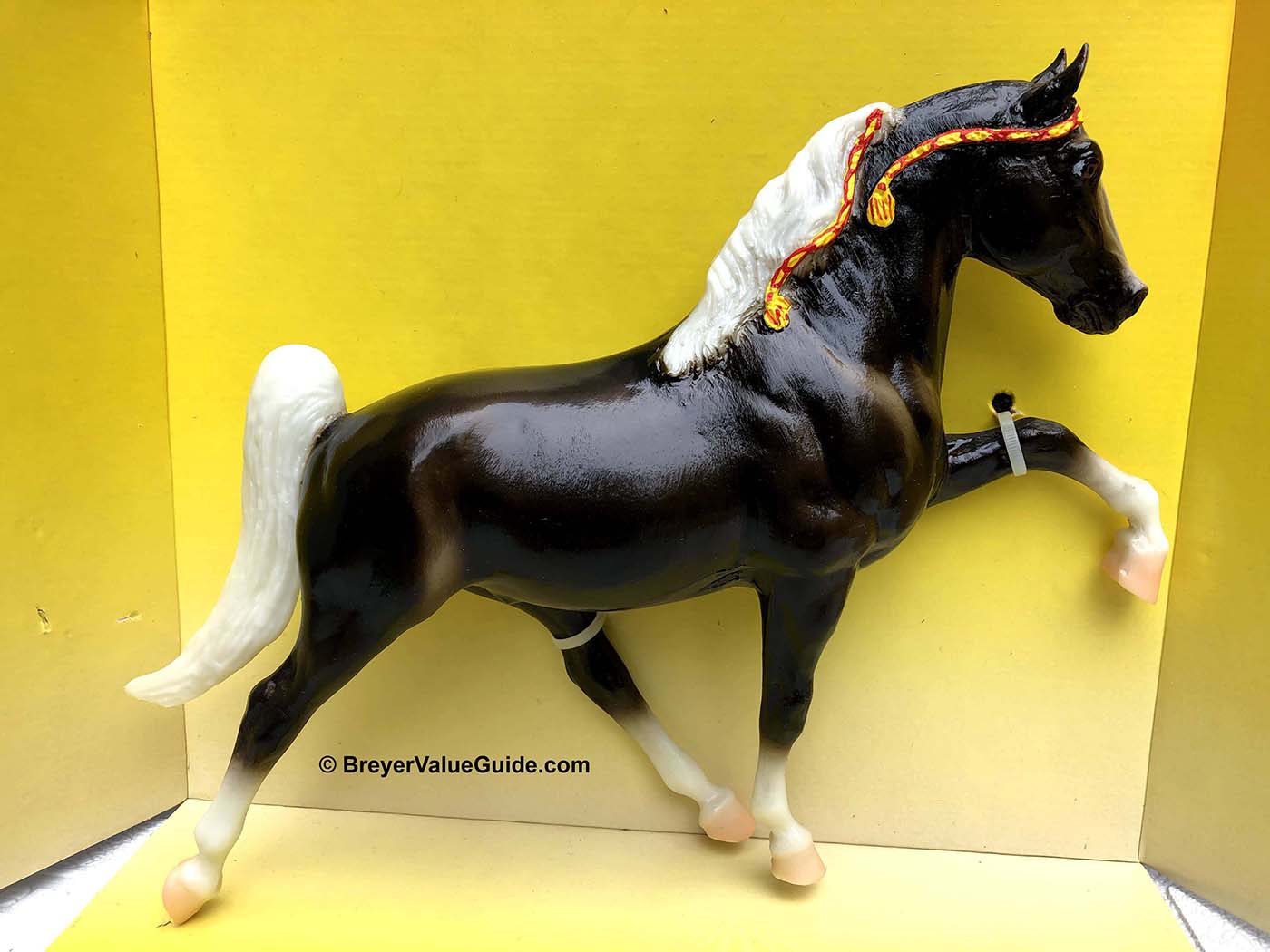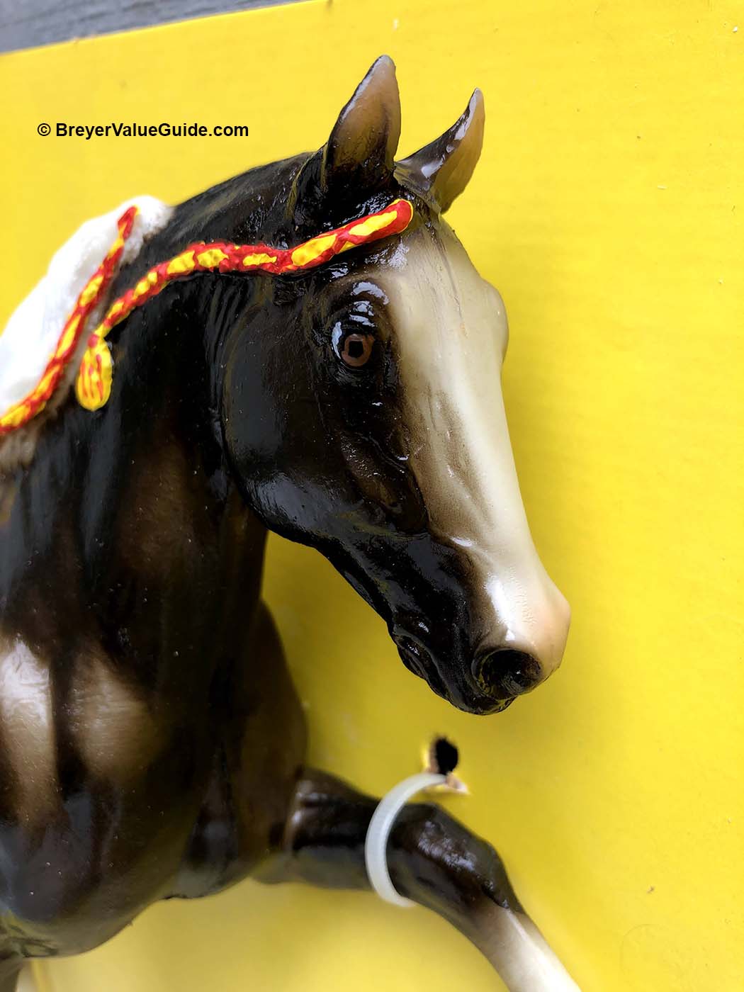 Glossy charcoal; bald face; 4 socks; red on yellow ribbons; Commemorative Edition; 1/7500