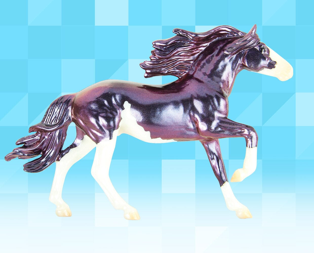 Metallic splash pinto with purple/pink interference, stenciled bald face, front socks, high hind stockings, Limited Edition Issue price: $24