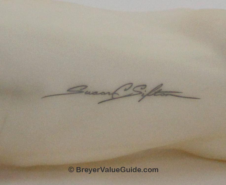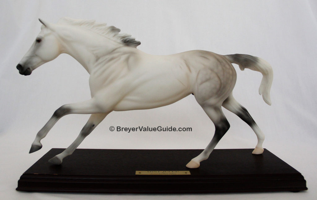 Matte light grey; dapples; 2 hind socks with natural hooves; signature on belly; wood base; QVC SR; 1/1500