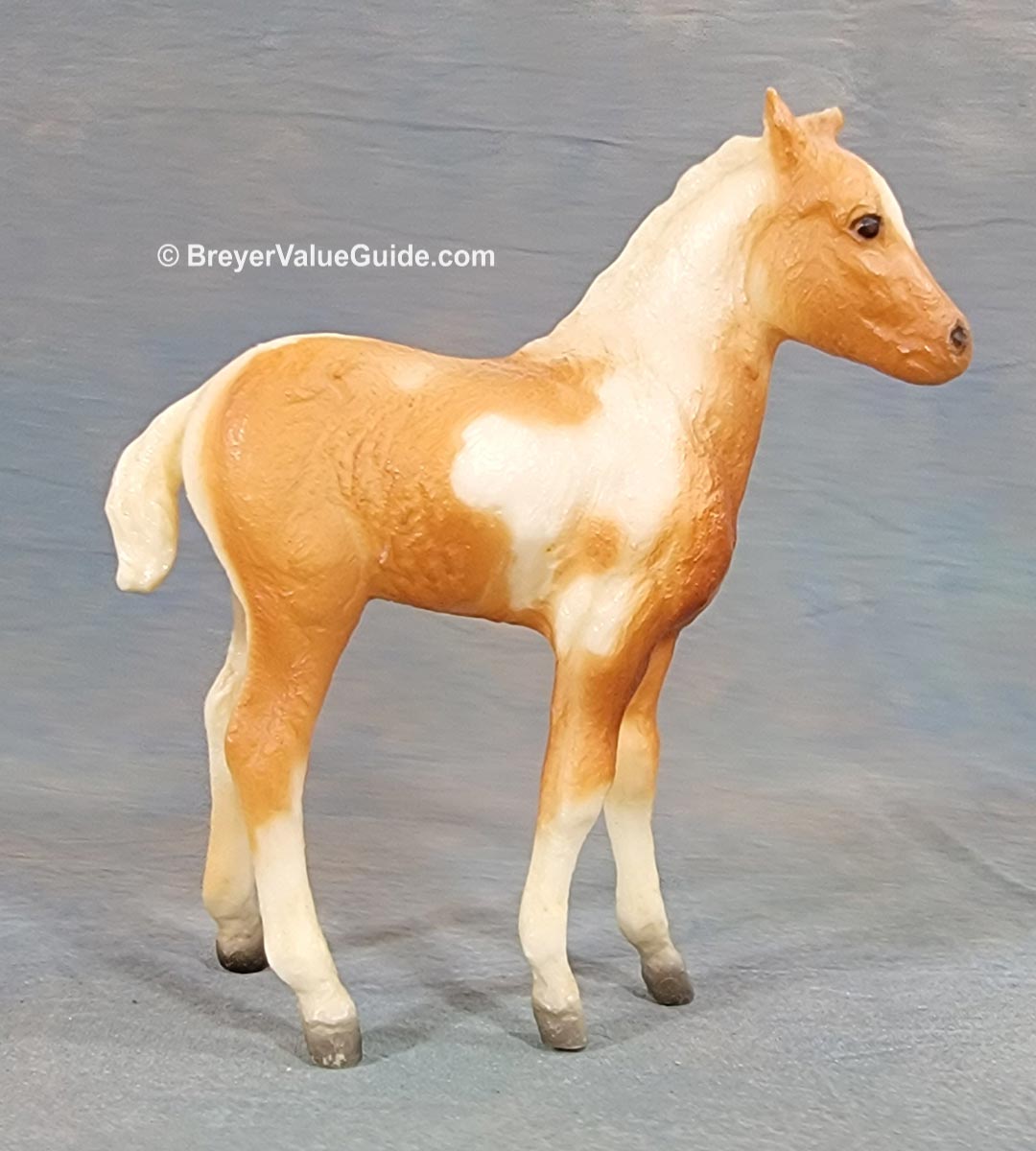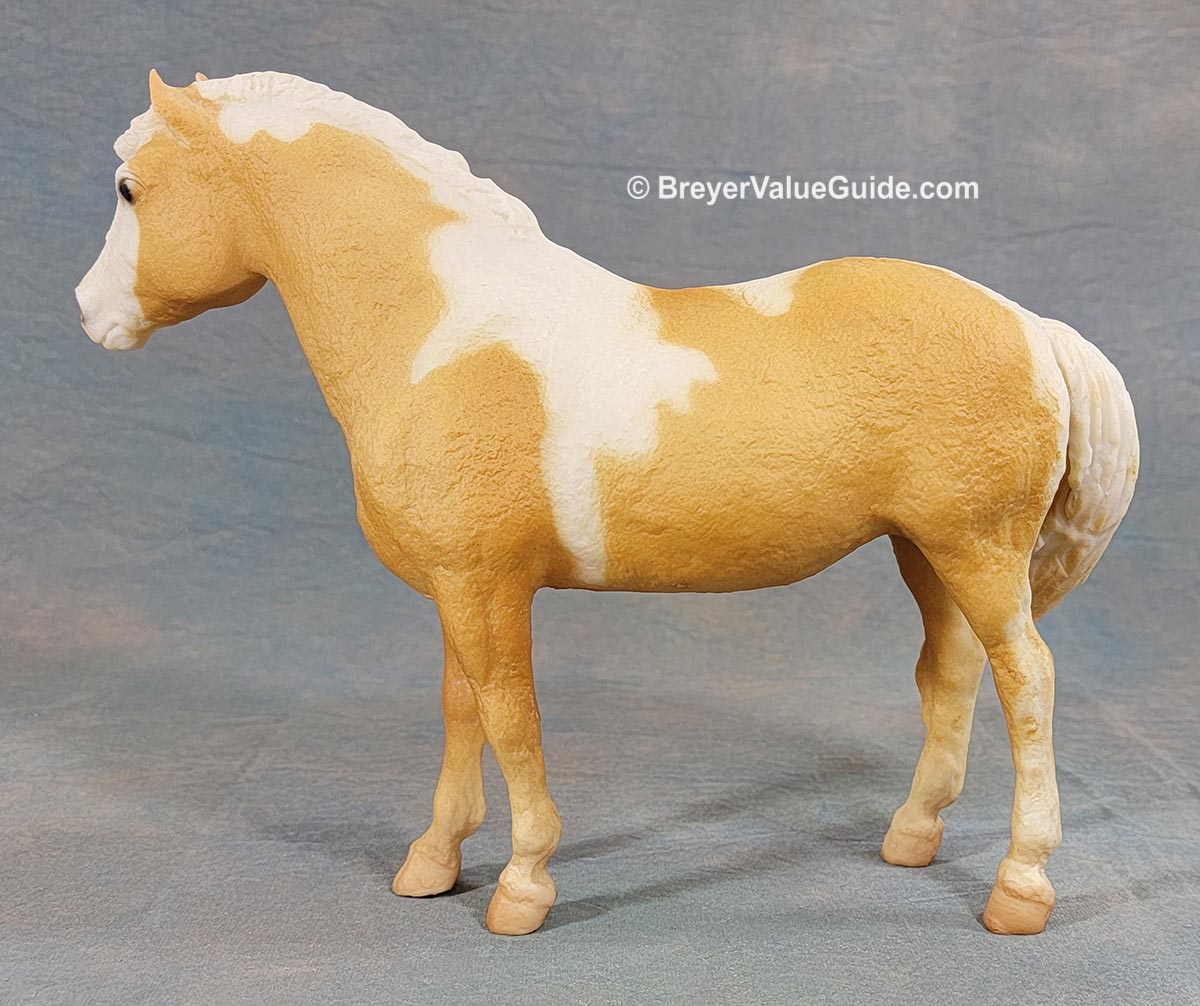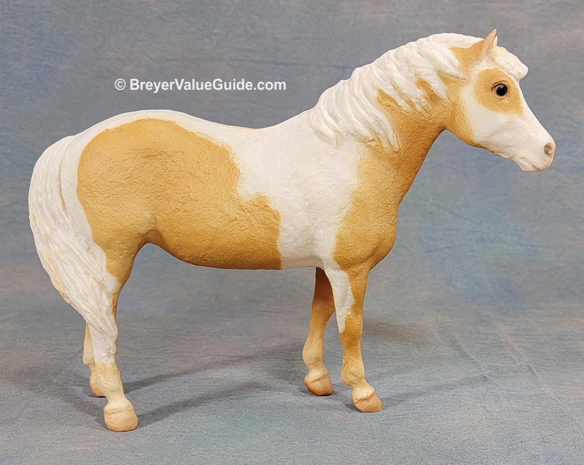Matte palomino pinto; white mane/tail; palomino circle on right eye; 4 high white stockings; includes book – with Stormy Valued as set.