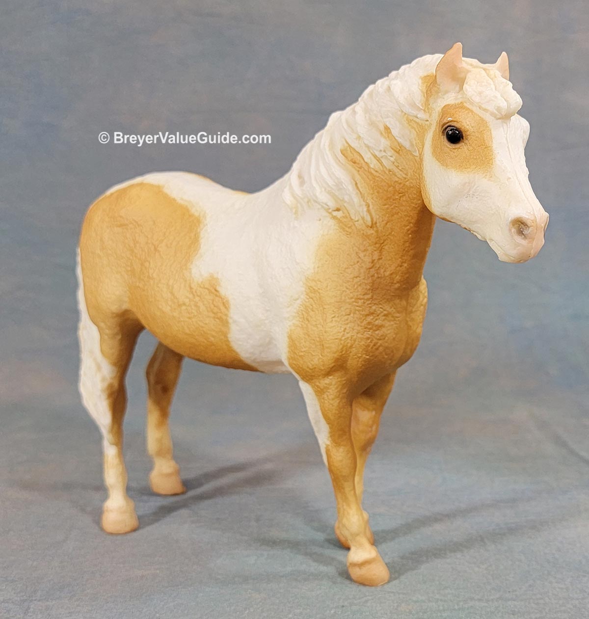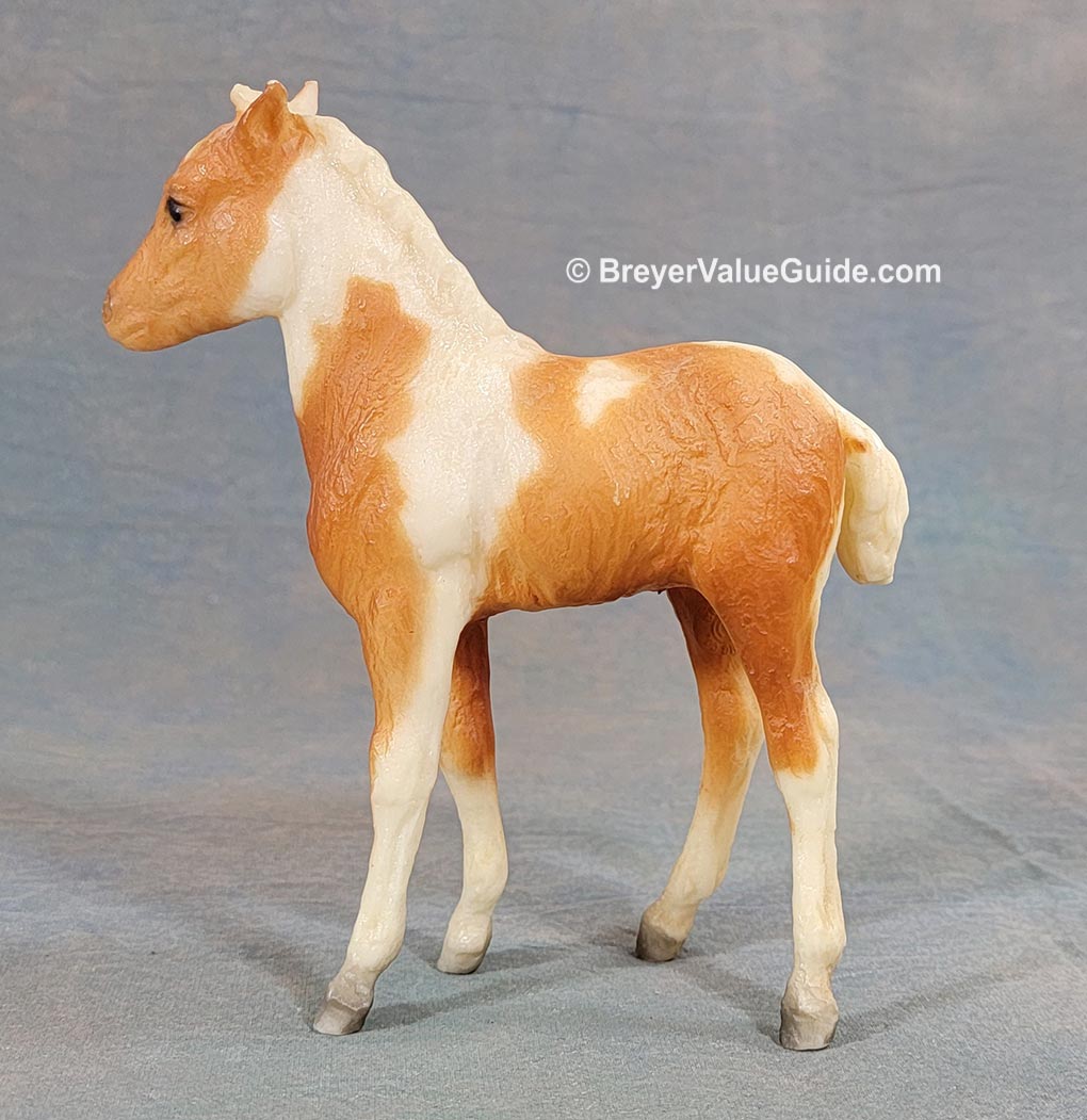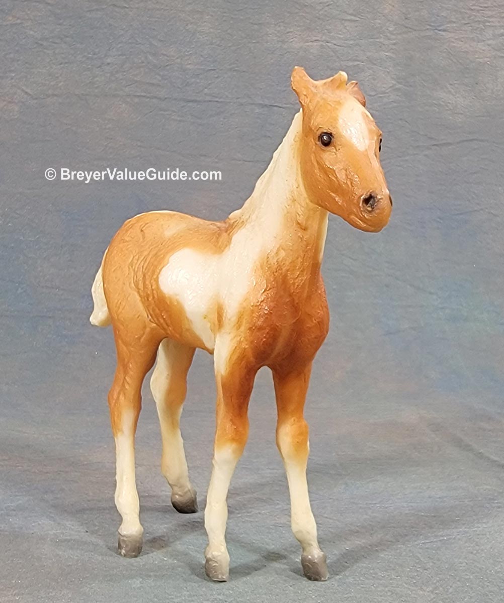 Matte palomino pinto; white mane/tail; palomino circle on right eye; 4 high white stockings; includes book – with Stormy Valued as set.