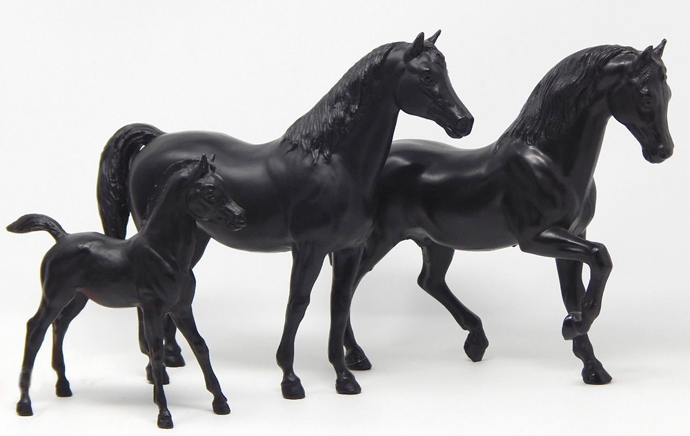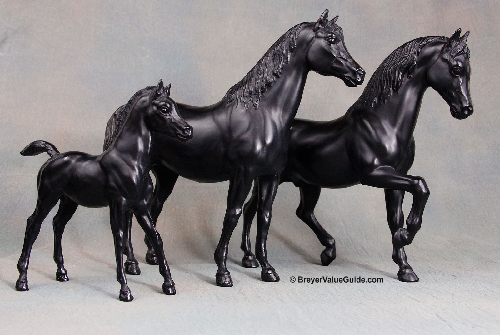 Made in 1977 for retail shops and sold by Bentley Sales Co at the Model Horse Congress in Chicago in 1978. Sold separately or in a set with Family Arabian Mare #11 and Family Arabian Foal #2. Exact quantity unknown, but at least several hundred sets were made.