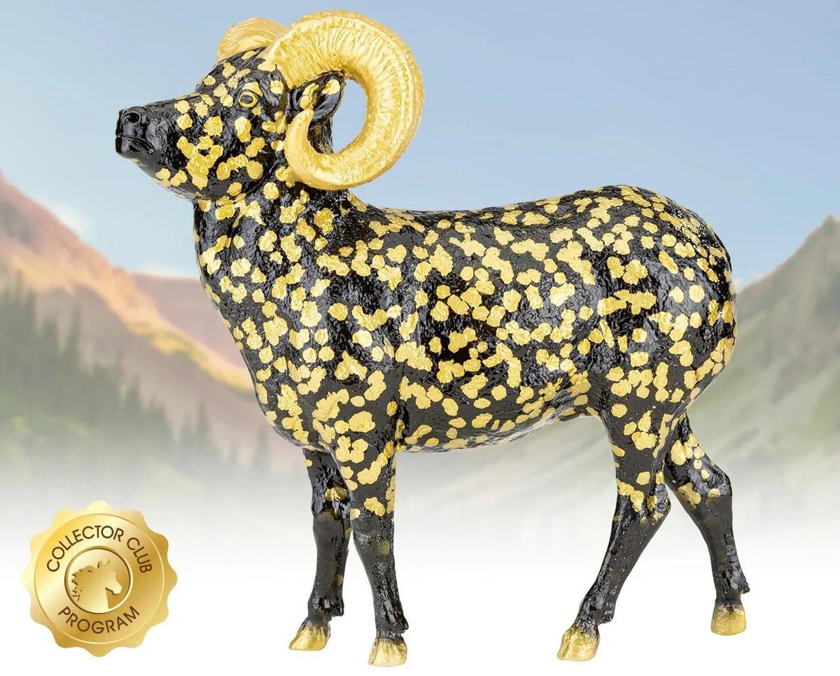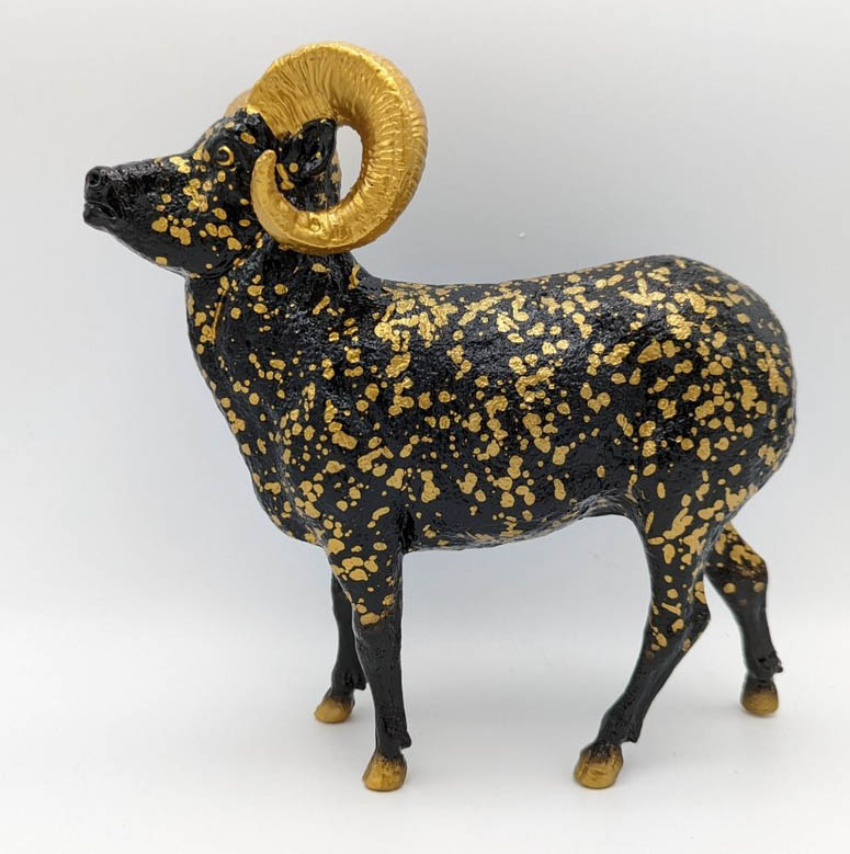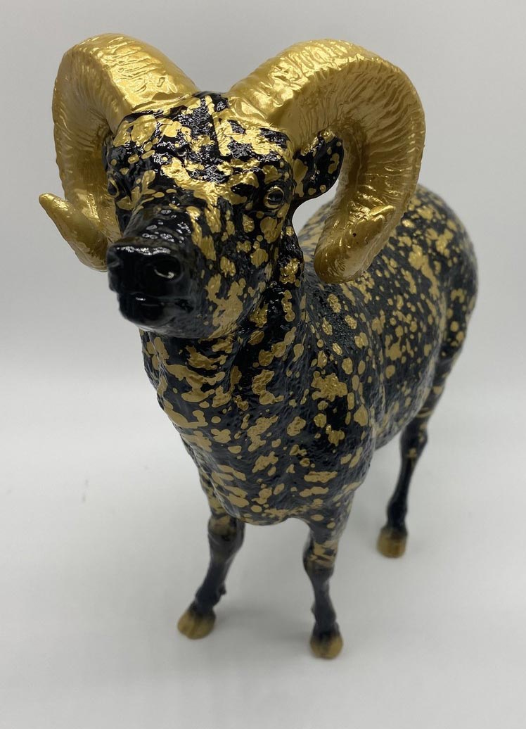 Glossy black with gold filigree spots, gold horns. Web SR, 1/490