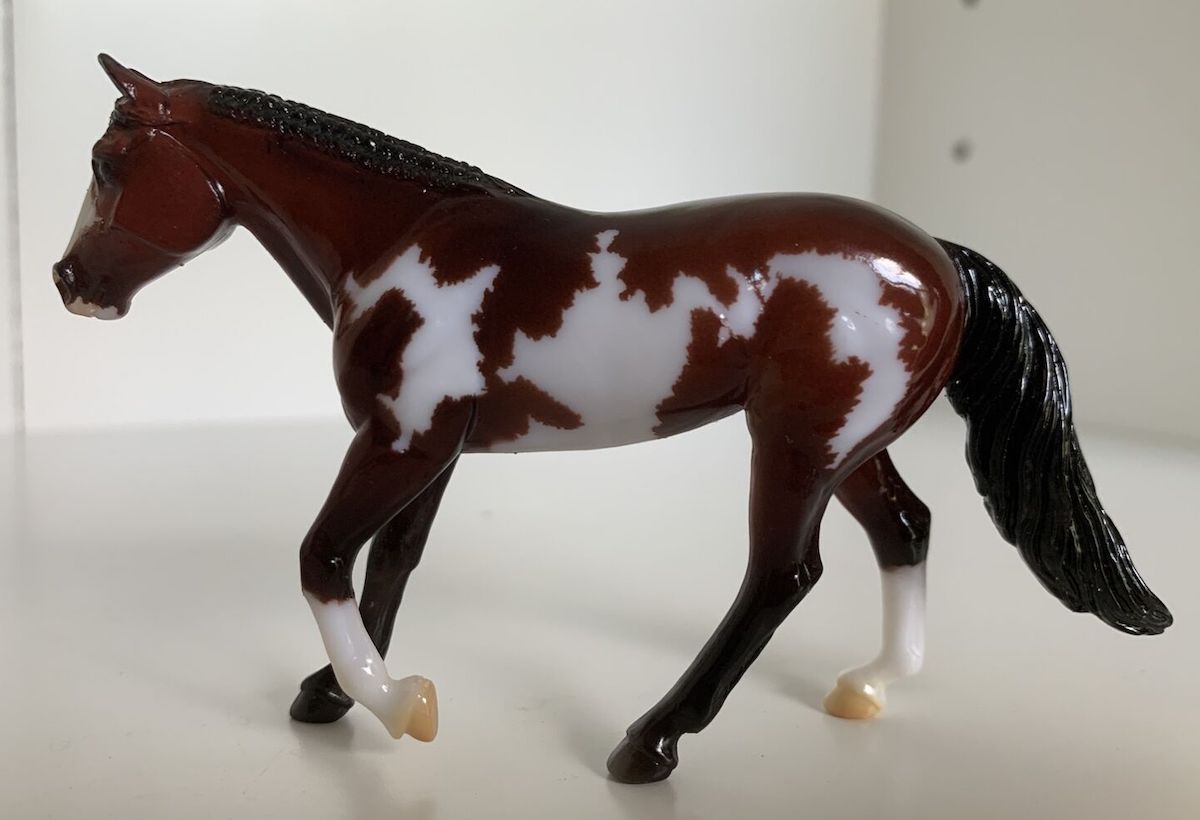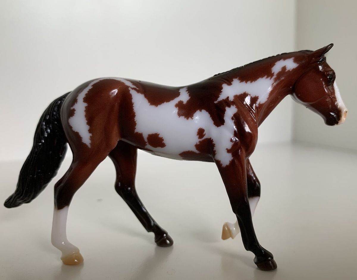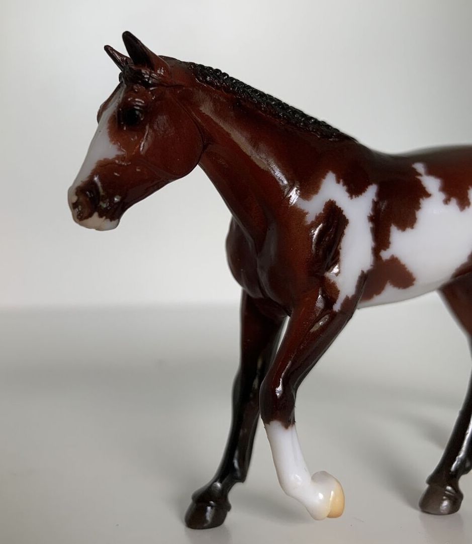 Glossy bay pinto; detailed markings; wide blaze; 2 socks; Big Easy Bash Event SR; 1/200