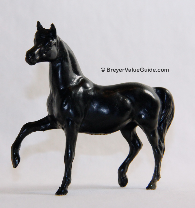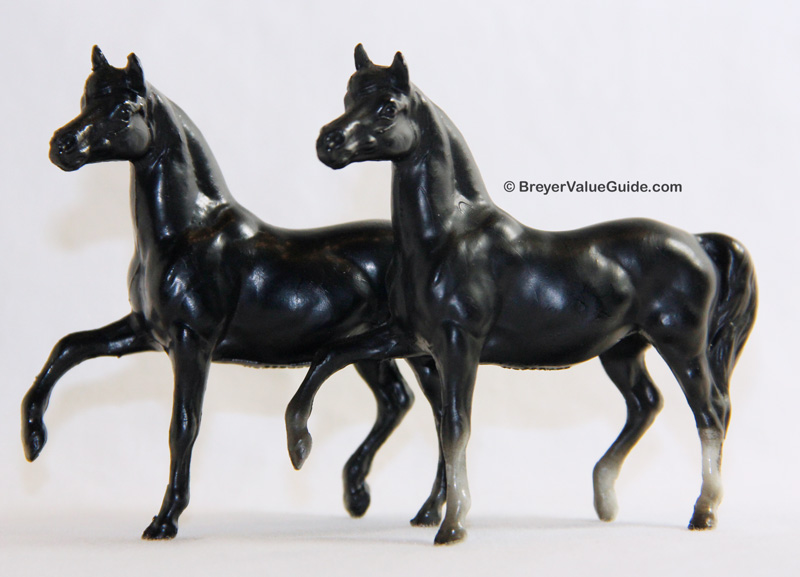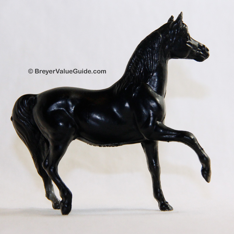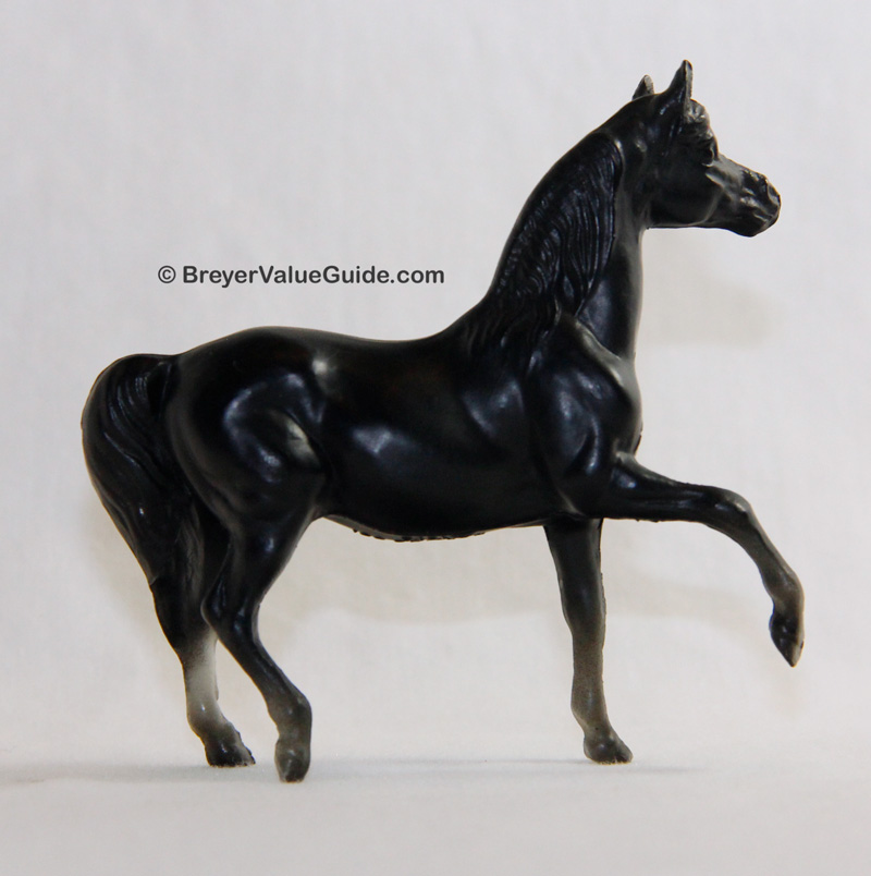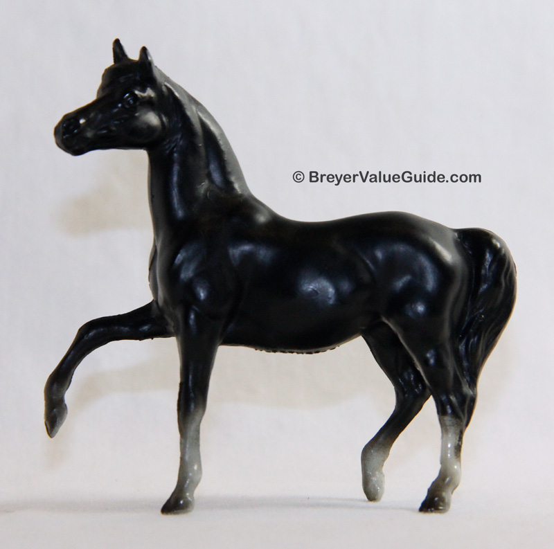 Matte black; various socks; dark hooves; 1988 release had 1 hind sock