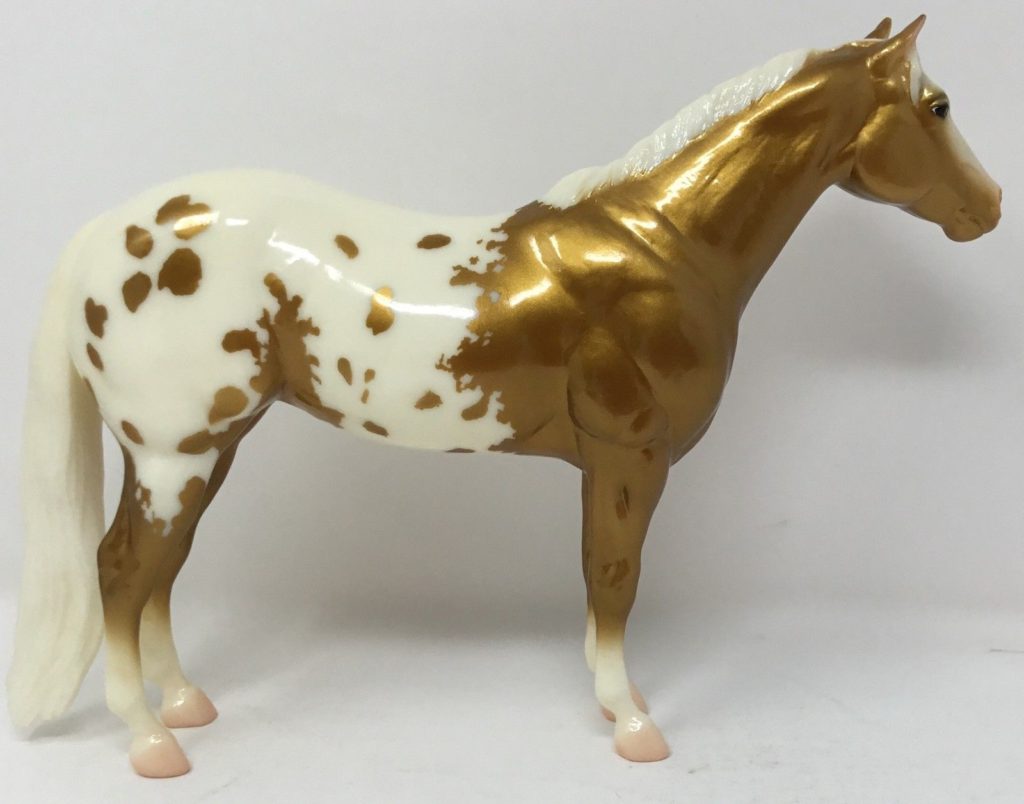 Glossy gold appaloosa; bald face; 4 socks; Web SR; 1/10