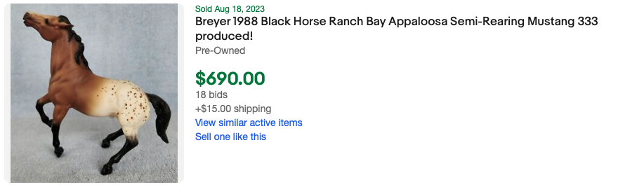 Matte bay blanket appaloosa; brown splash spots; lighter face; Black Horse Ranch SR; 1/333 Value based on 2023 sold auction price.