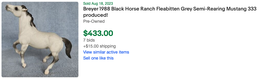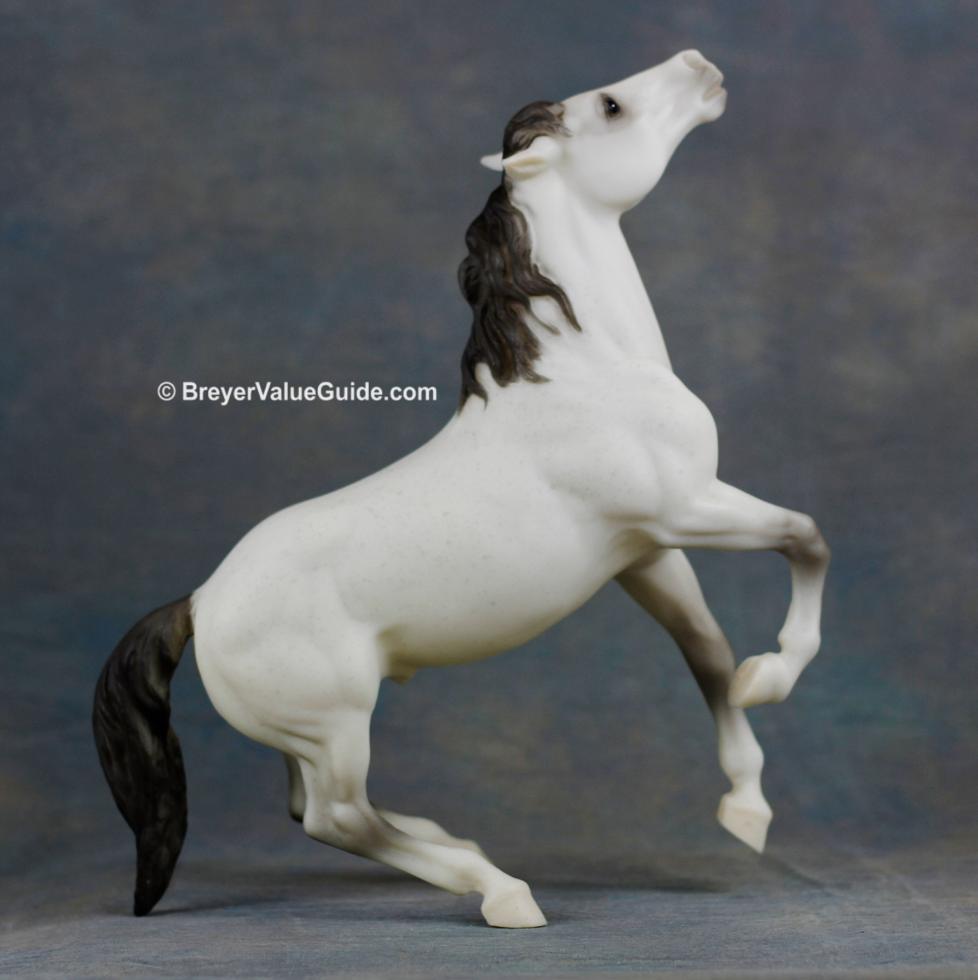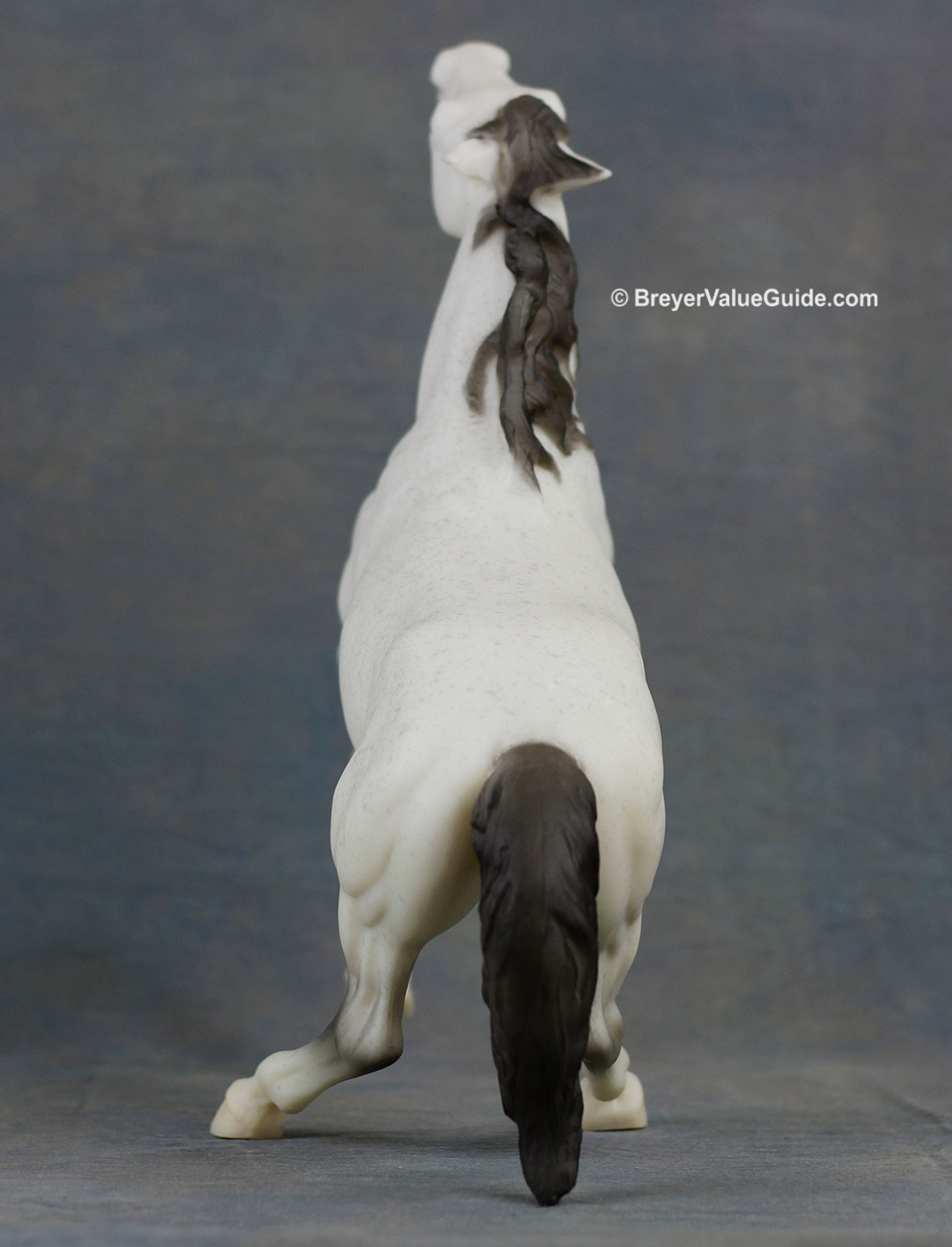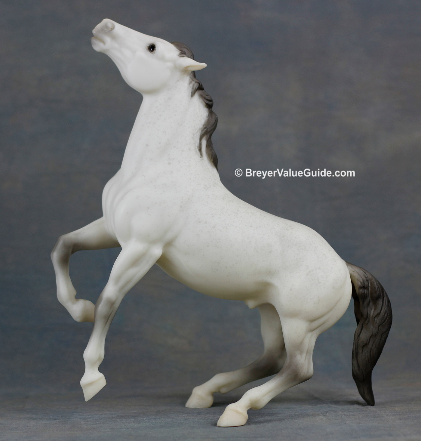 Matte flea-bitten grey; light grey splatter flea-bitten spots, dark grey mane and tail, Black Horse Ranch SR; 1/333