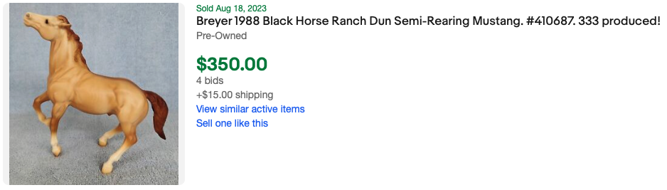 Matte red dun; lighter face, dorsal stripe, 4 socks; Black Horse Ranch SR; 1/333