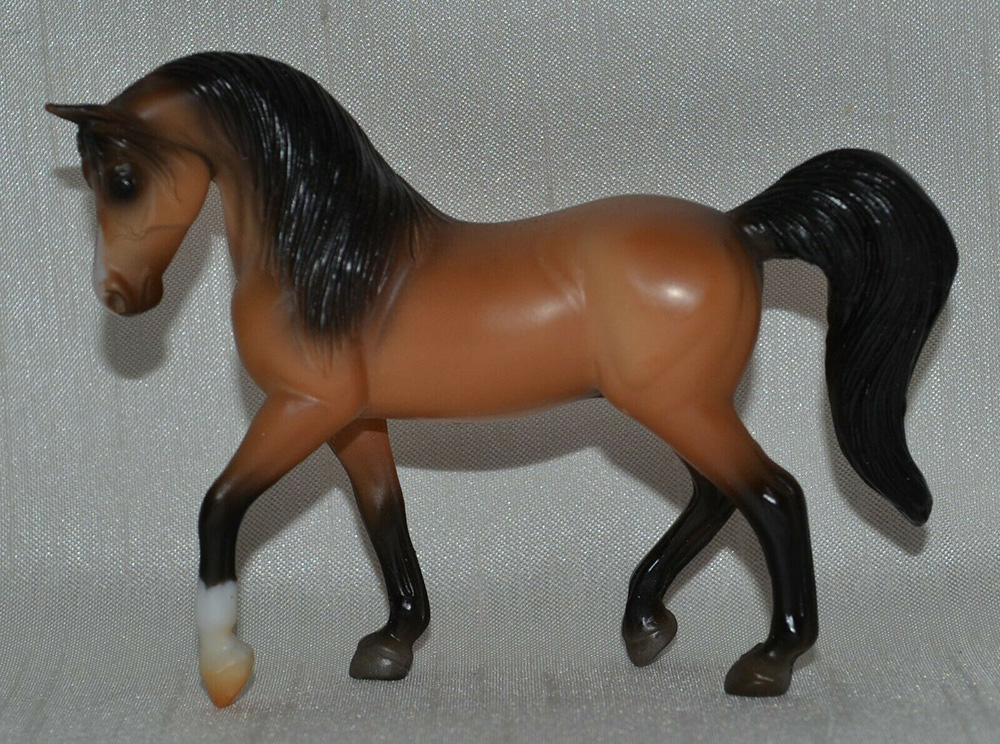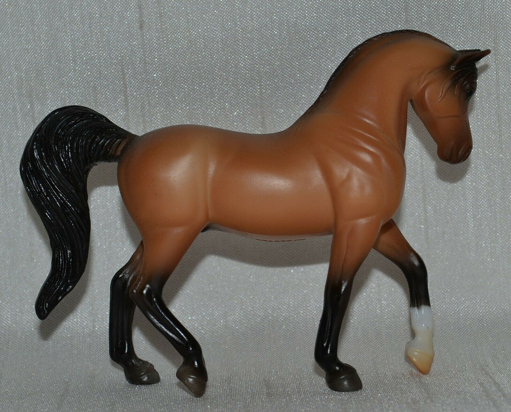 Matte buckskin or sandy bay; large snip; 1 front sock – with Tennessee Walking Horse and Scrambling Foal