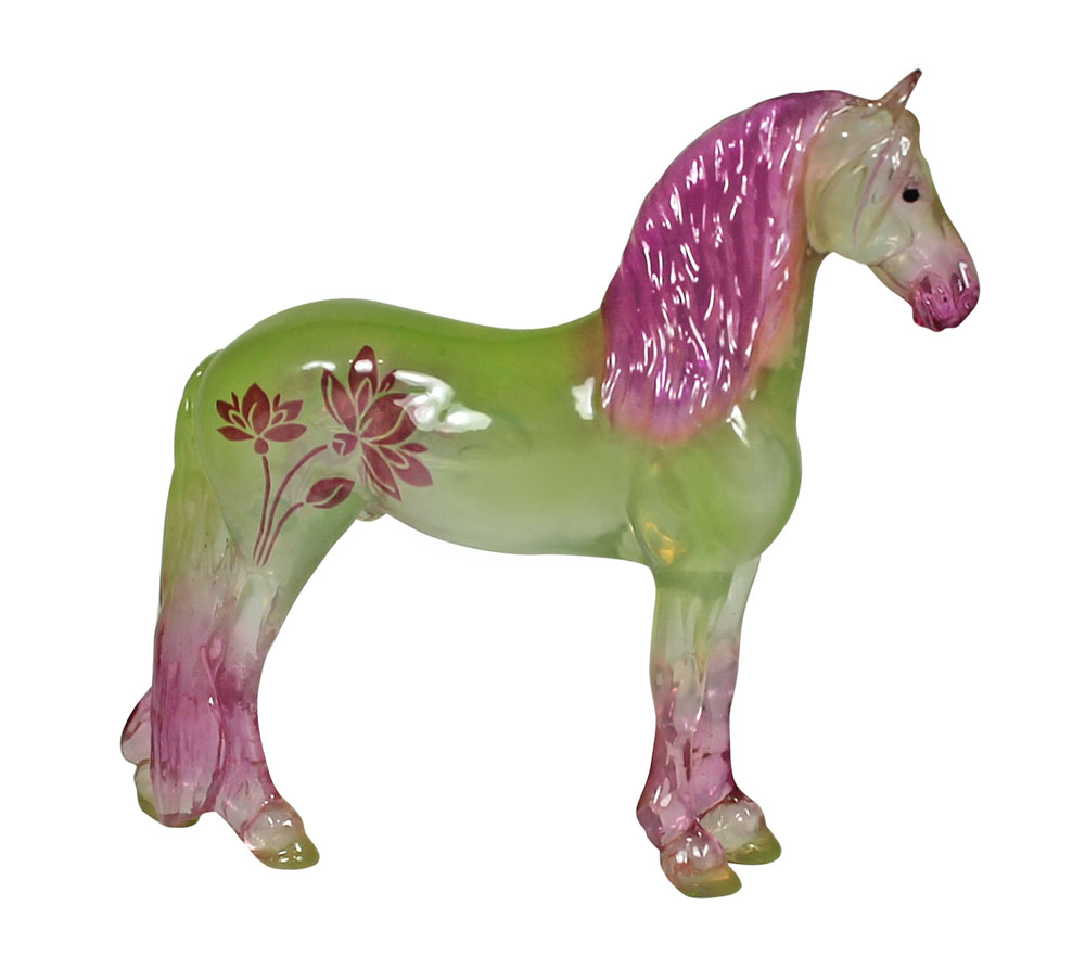 Translucent light green with purple points; flower design on hip; BreyerFest SR; 1/2000