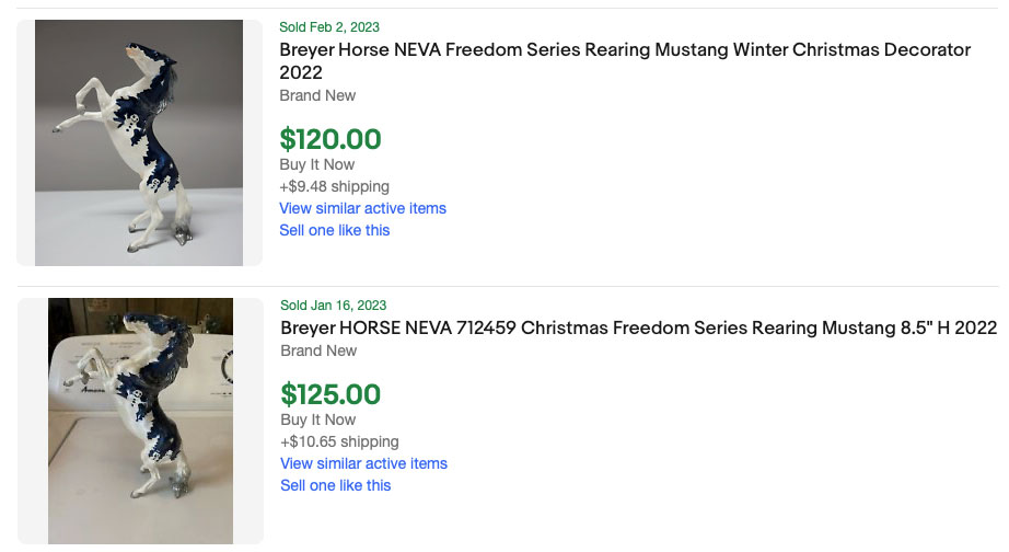 Glossy, pearly white and deep metallic blue decorator pinto, silver shaded mane and tail, Holiday Collection Limited Edition Issue price: $30