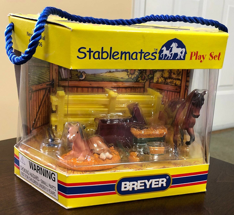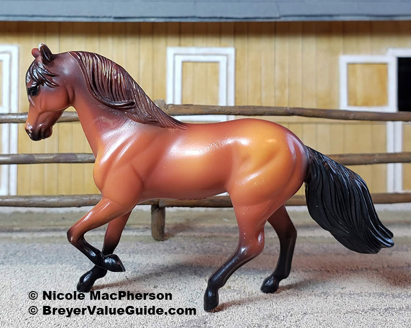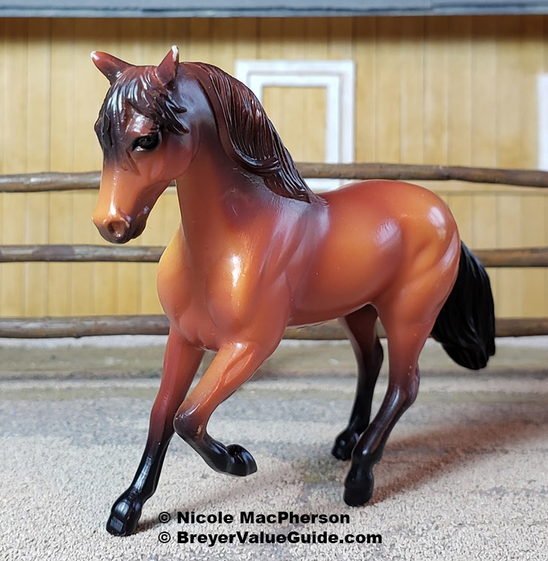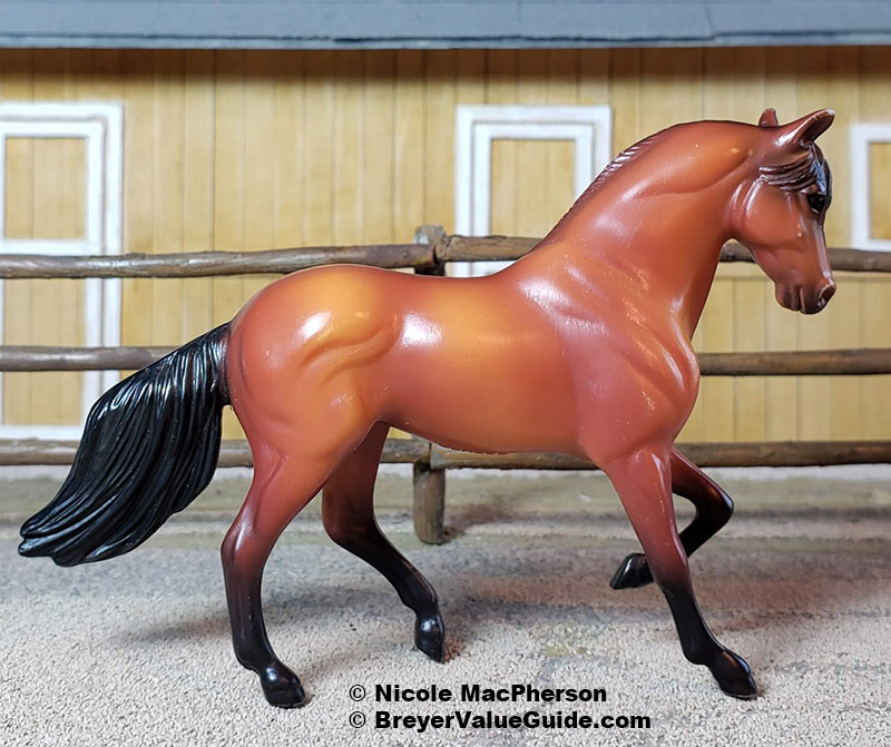 Matte red bay; darker mane/ tail and points; with Thoroughbred Lying Foal Re-released in 2005-2007 with Scratching Foal