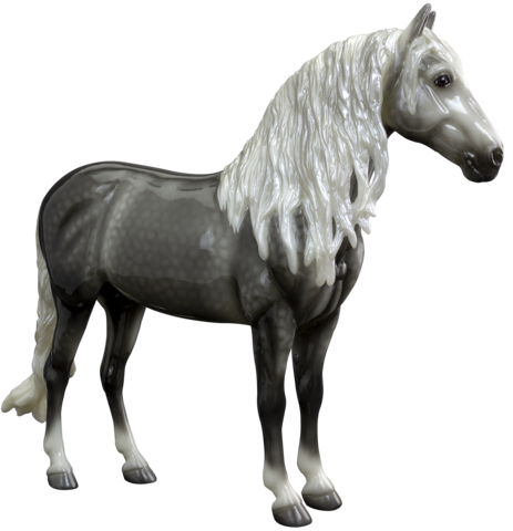 Glossy dark dappled grey, bald face, 4 low socks, white mane and tail, BreyerFest Raffle SR, 1/26