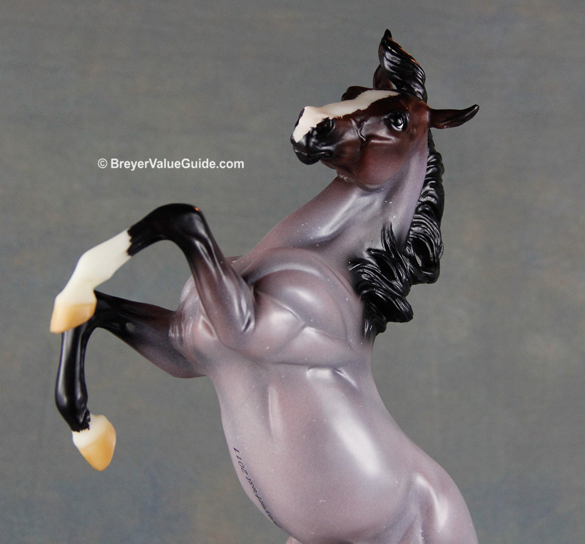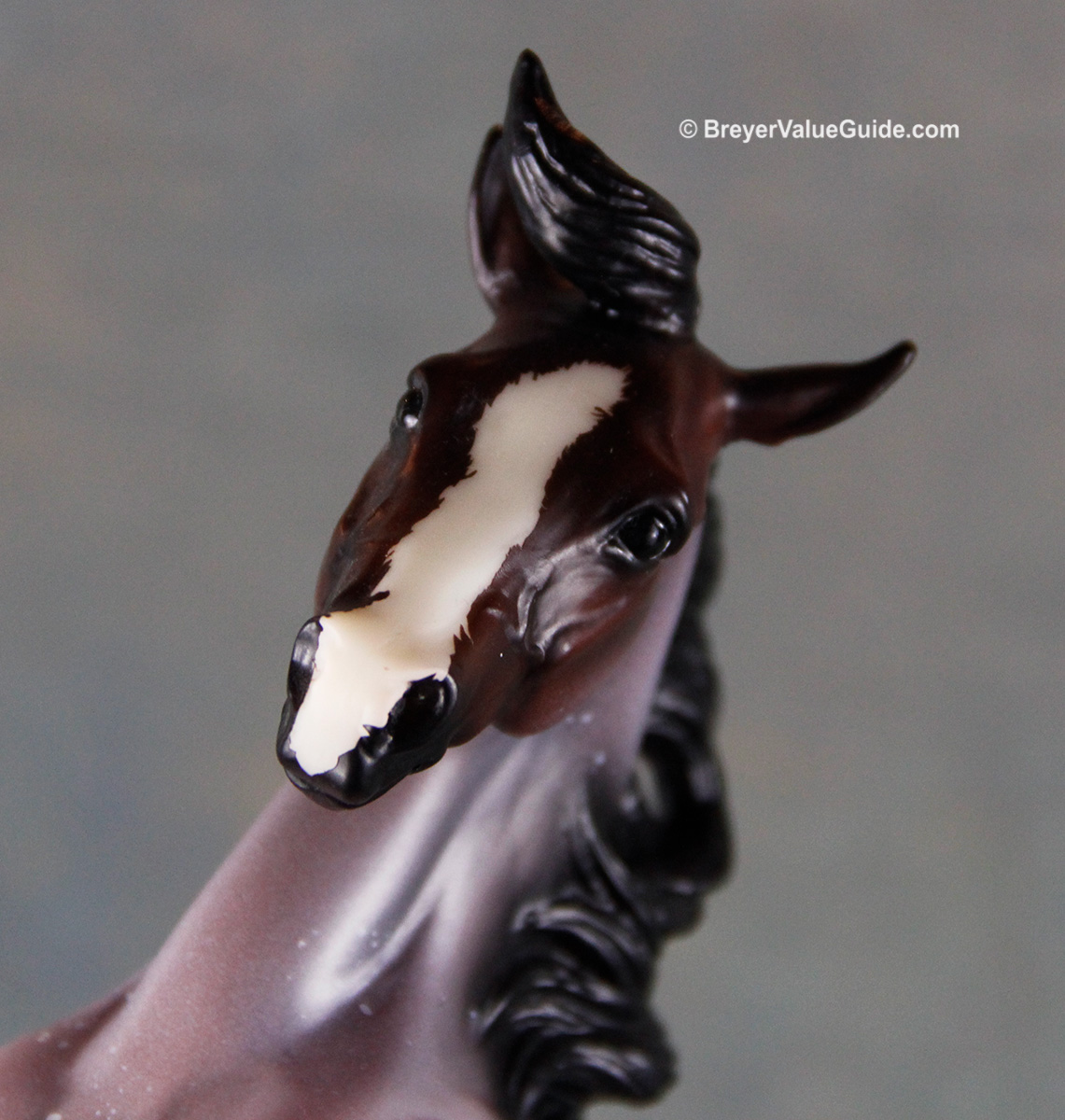Matte bay roan; wide blaze; 3 socks; BreyerFest Volunteer SR; 1/137