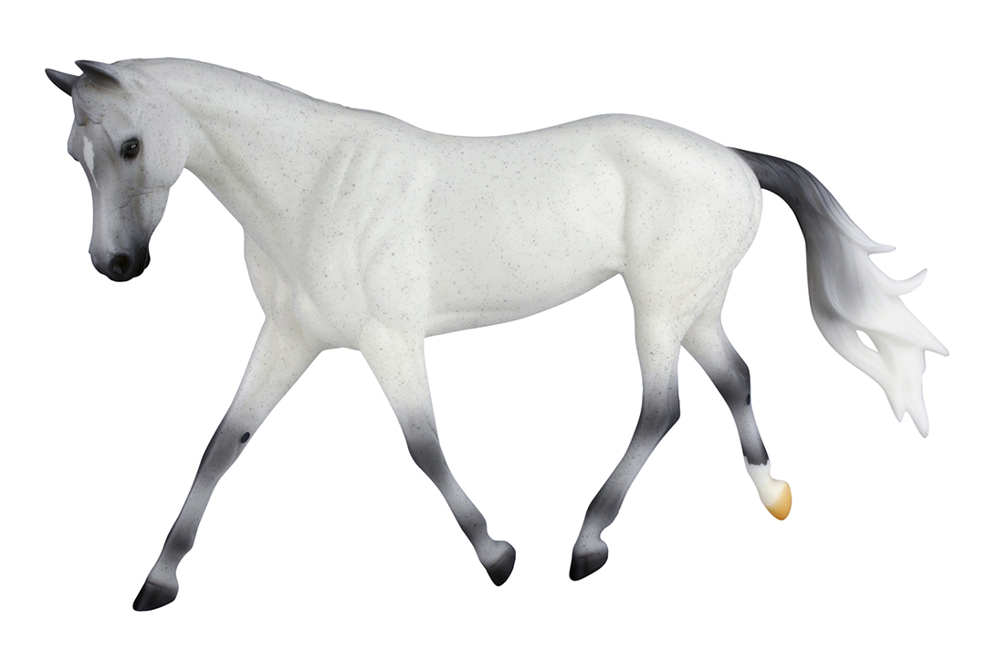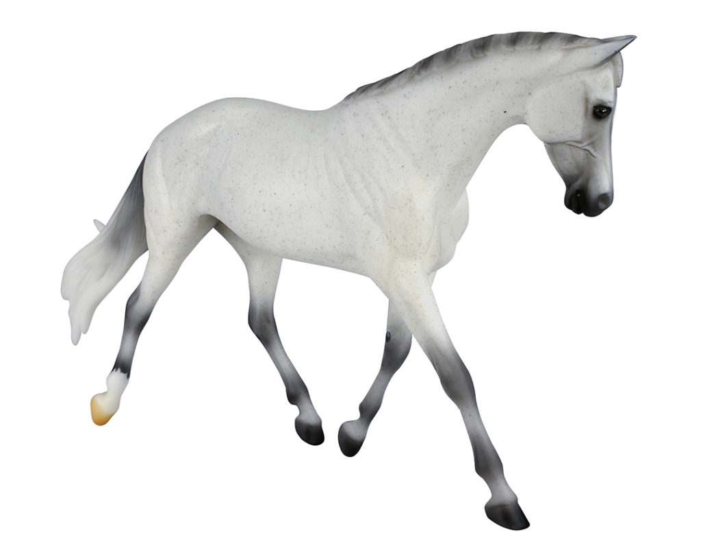 Matte flea-bitten grey; shaded points; star; 1 hind sock; BreyerFest 2018 on belly; BreyerFest SR; 1/1250