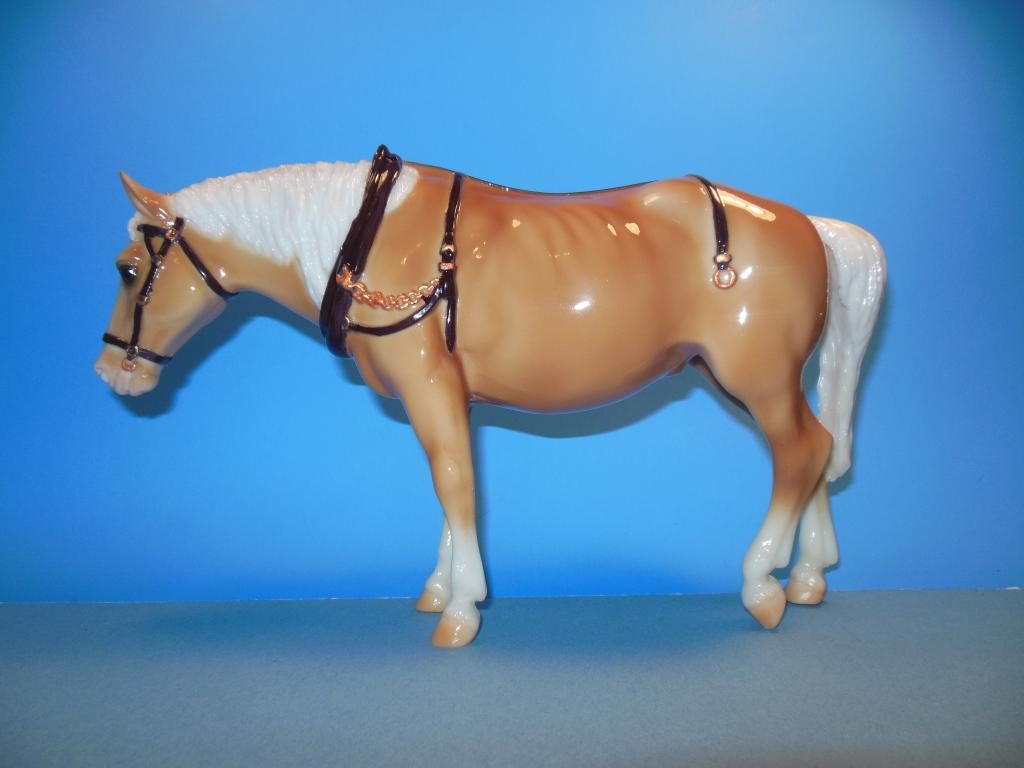 Glossy palomino; bald face; 4 socks; no hat or blinders; Warehouse Find