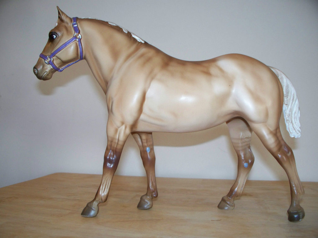 Matte dunalino; shaded legs with barring; purple halter; “BreyerFest 2009” stamped on belly; BreyerFest SR; 1/450