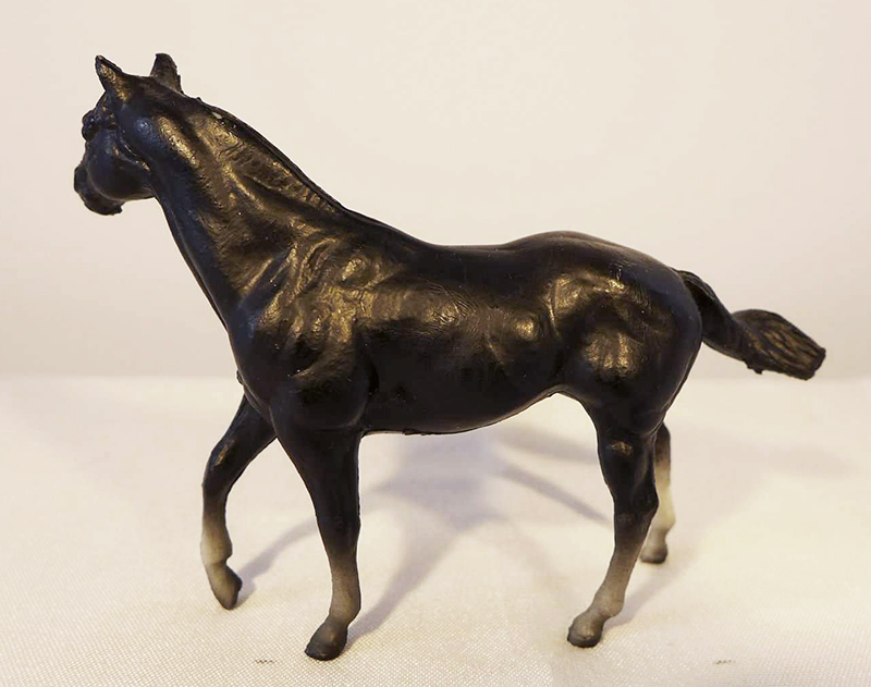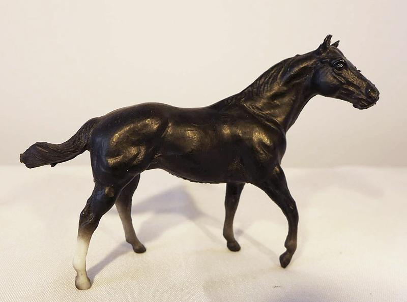 Matte black; varied socks with distinct right hind sock; Chincoteague Pony Farm SR; actual production dates unknown
