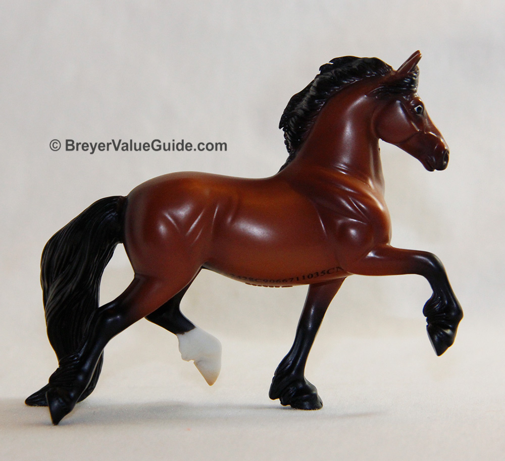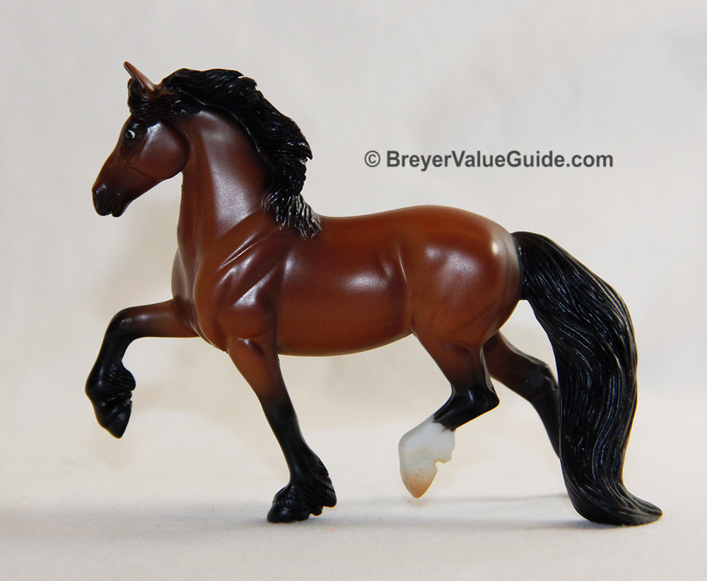 Matte red bay; black points; stripe; eye whites; 1 hind sock; JCPenney SR