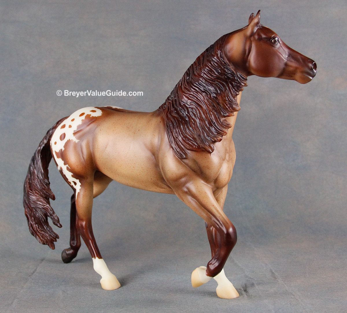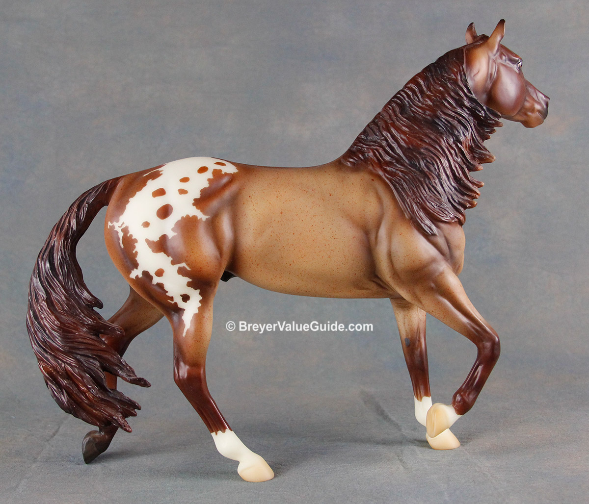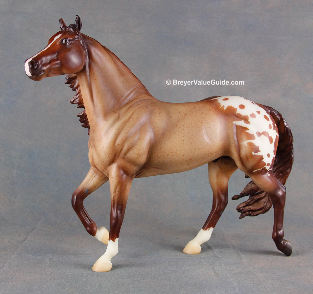 Matte red roan blanket appaloosa; stripe and snip; 3 socks; BreyerFest Volunteer SR; 1/150