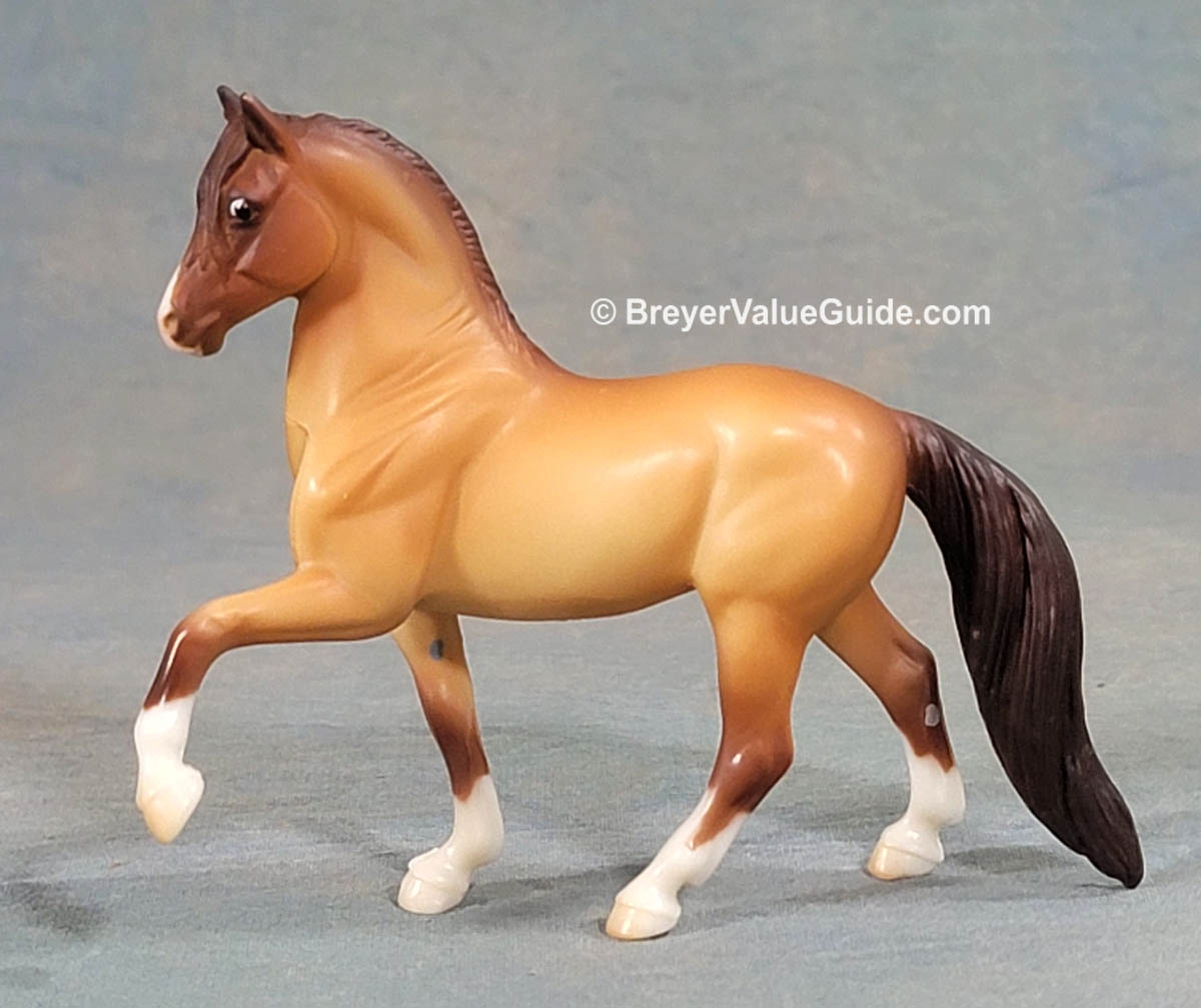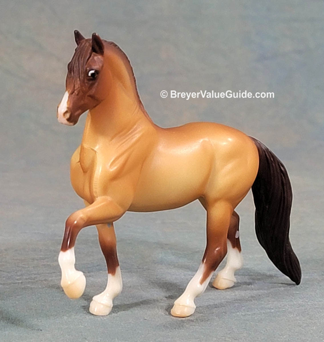 Matte red roan; darker mane and tail; large snip; 4 socks; Walmart release; same as #5906