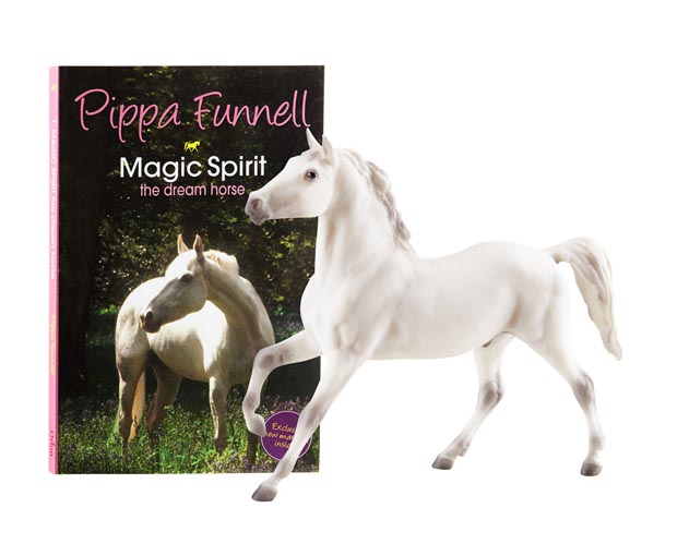 Matte light grey; shaded points; grey hooves; includes paperback book “Magic Spirit”