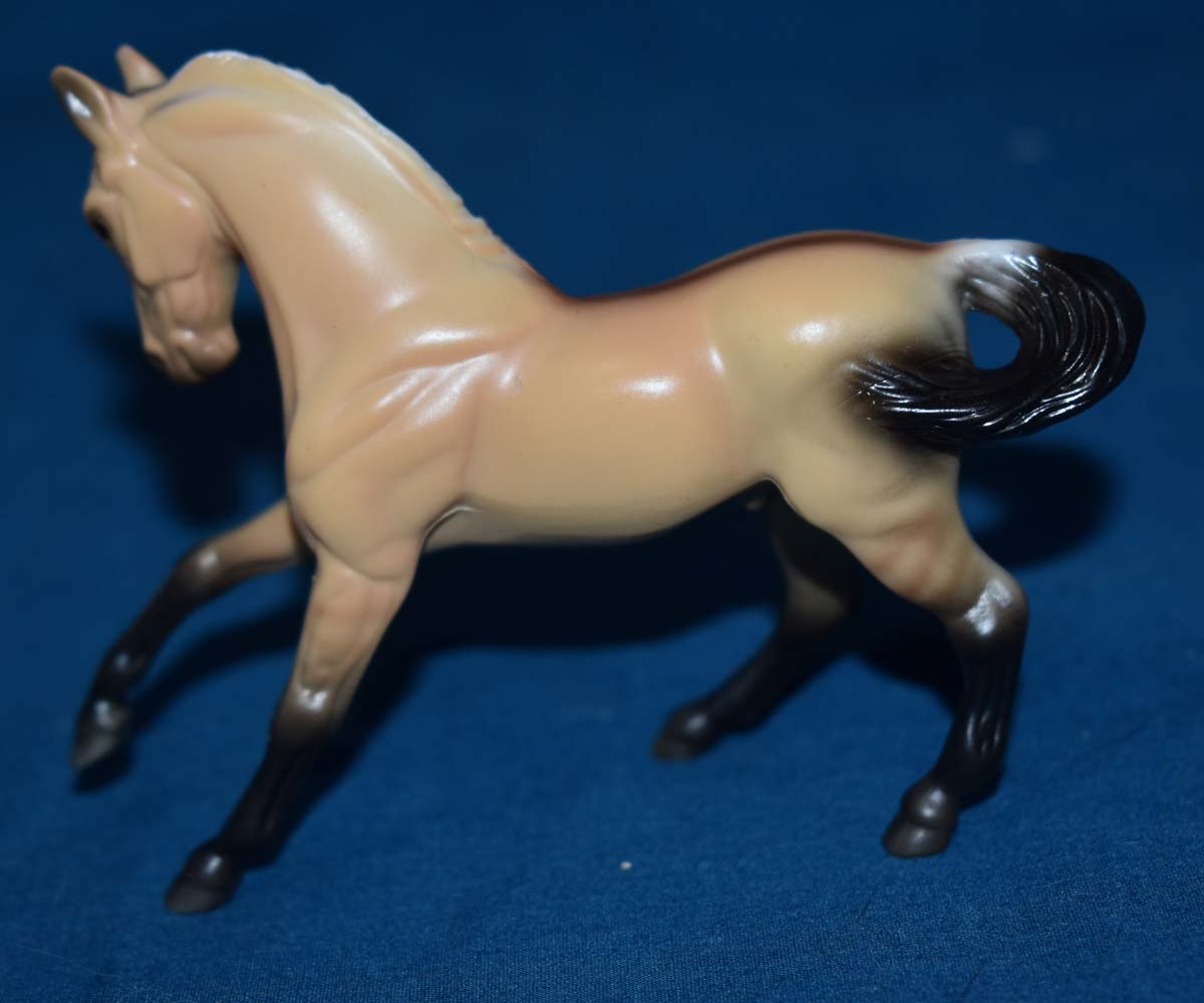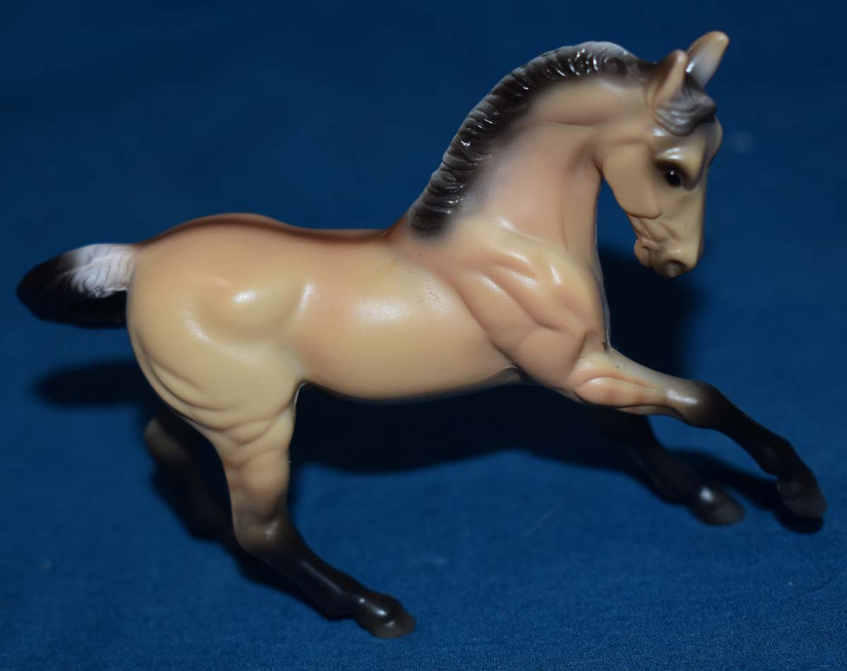Matte “dunskin,” frosted black mane and tail, dorsal stripe, black legs, leg barring Issue price: $16 set