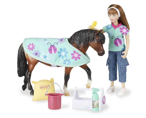 Matte bay blanket appaloosa; 2 front socks; includes doll; blanket and accessories