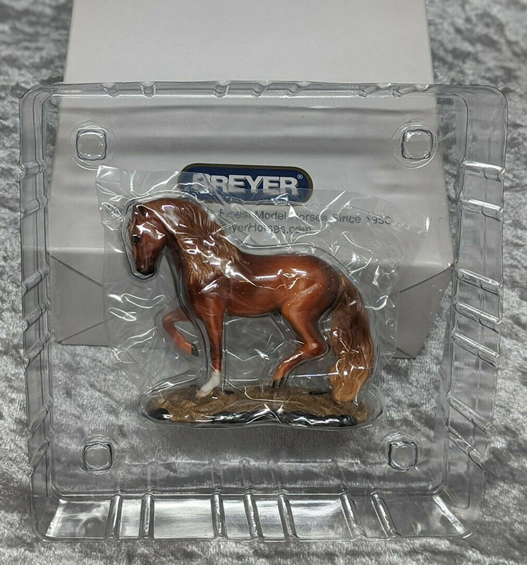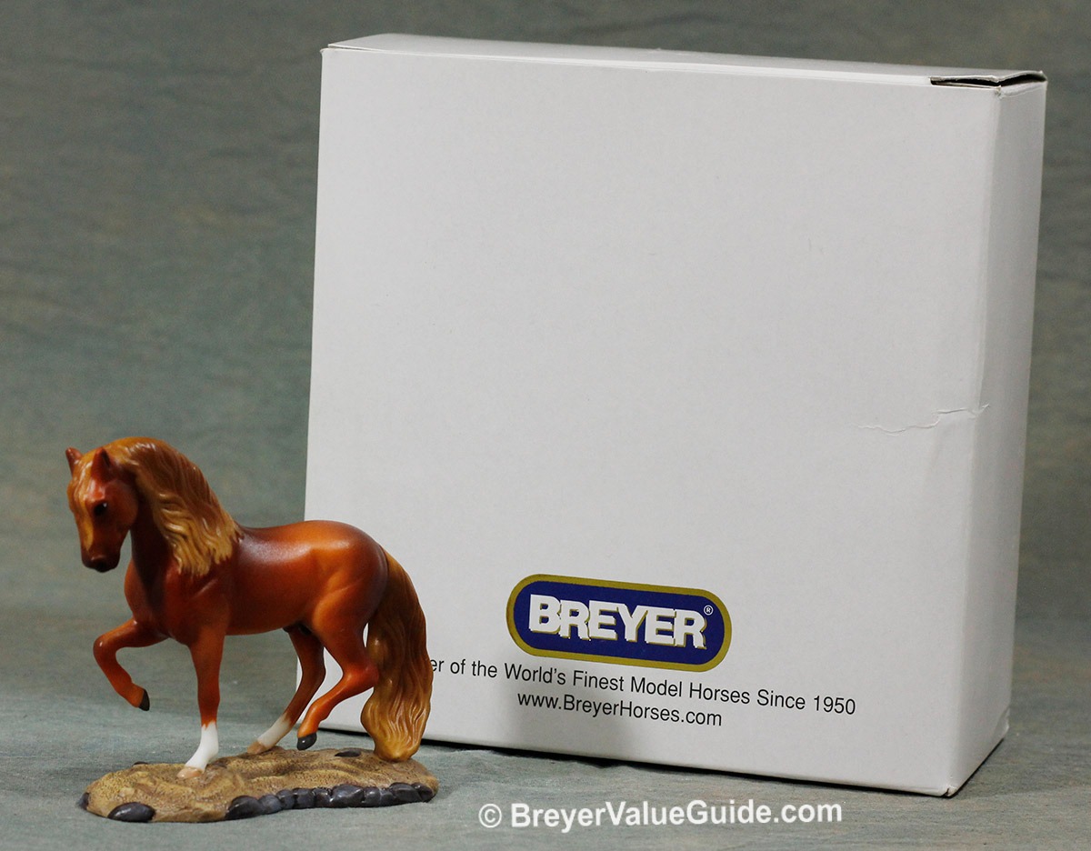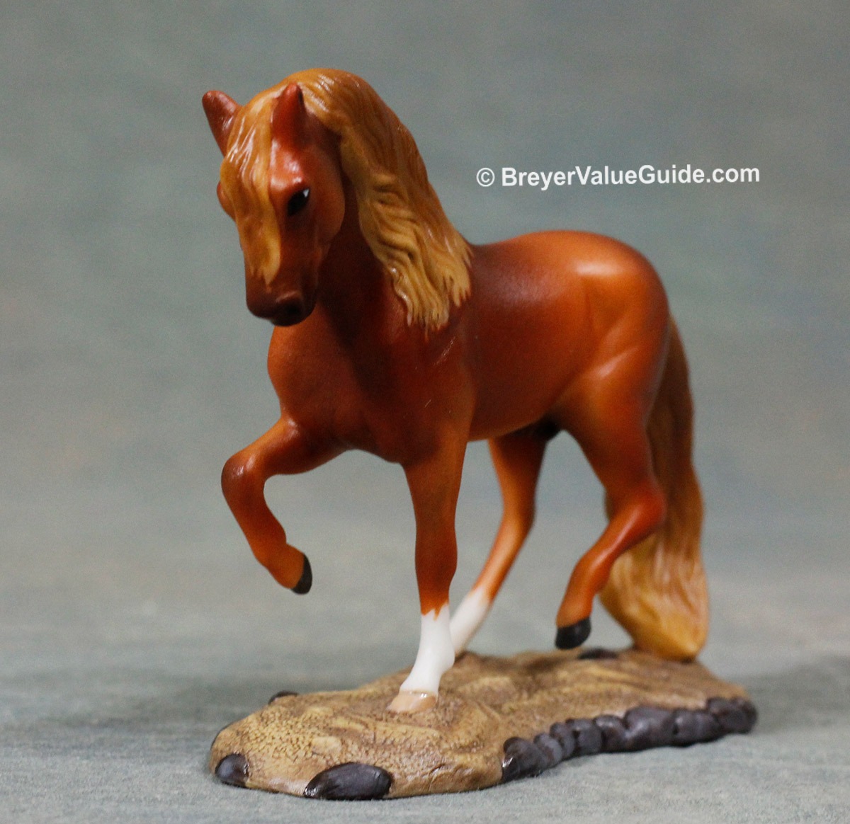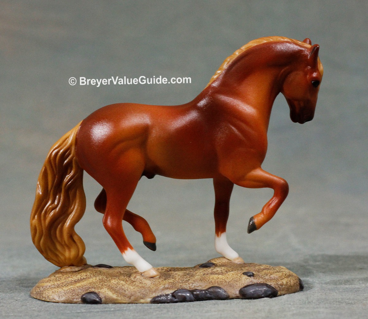 Porcelain; semi-gloss red chestnut; flaxen mane and tail; 2 socks; on base