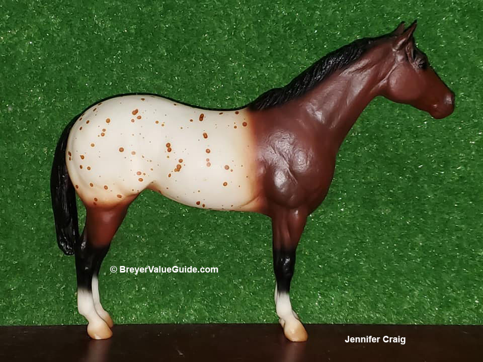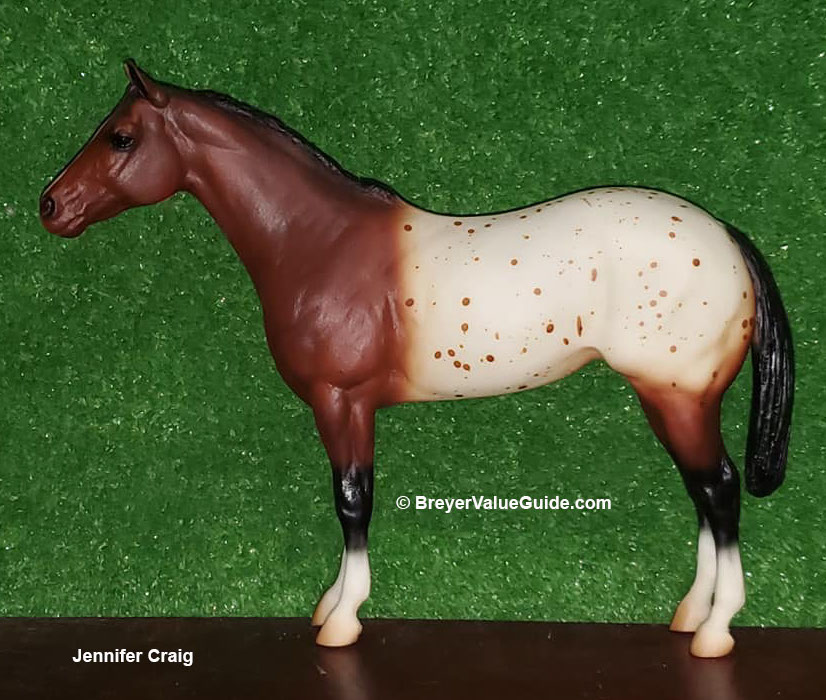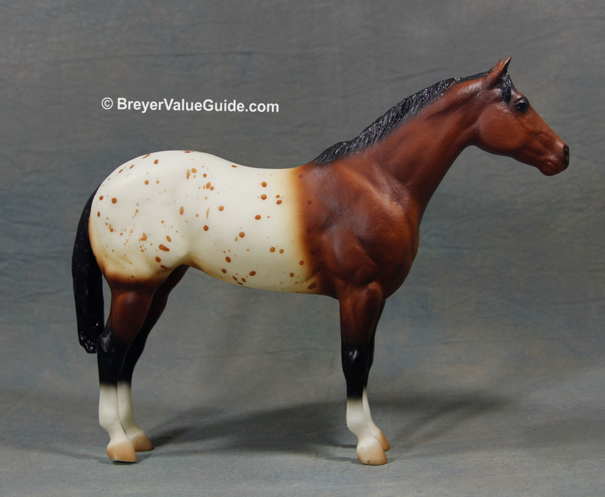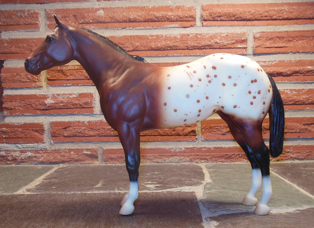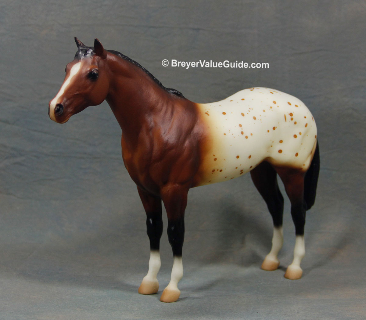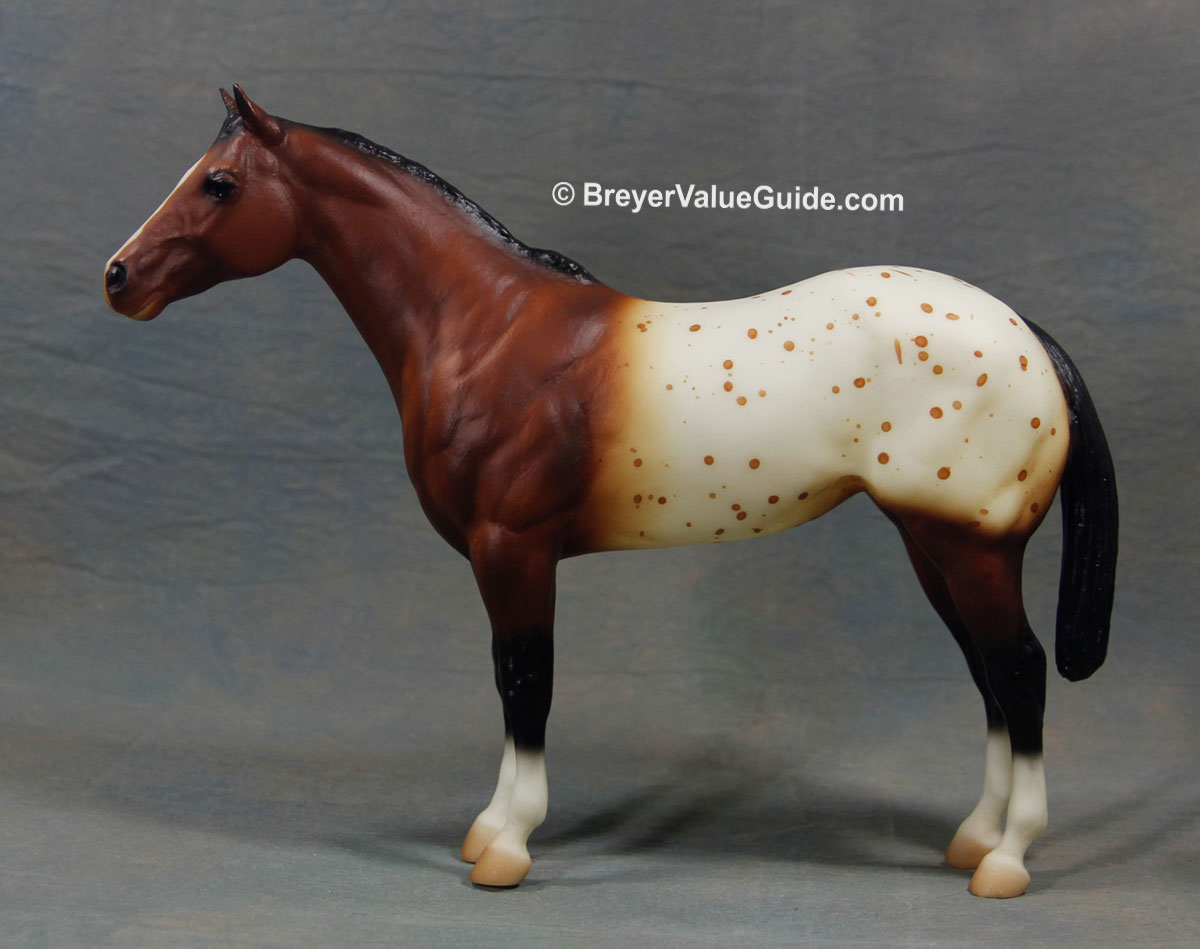 Matte red bay appaloosa; stripe-snip; 4 socks; German Export; 1/900