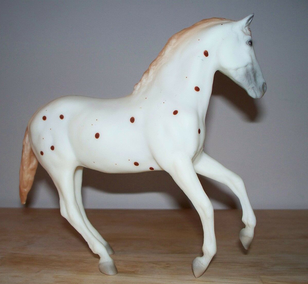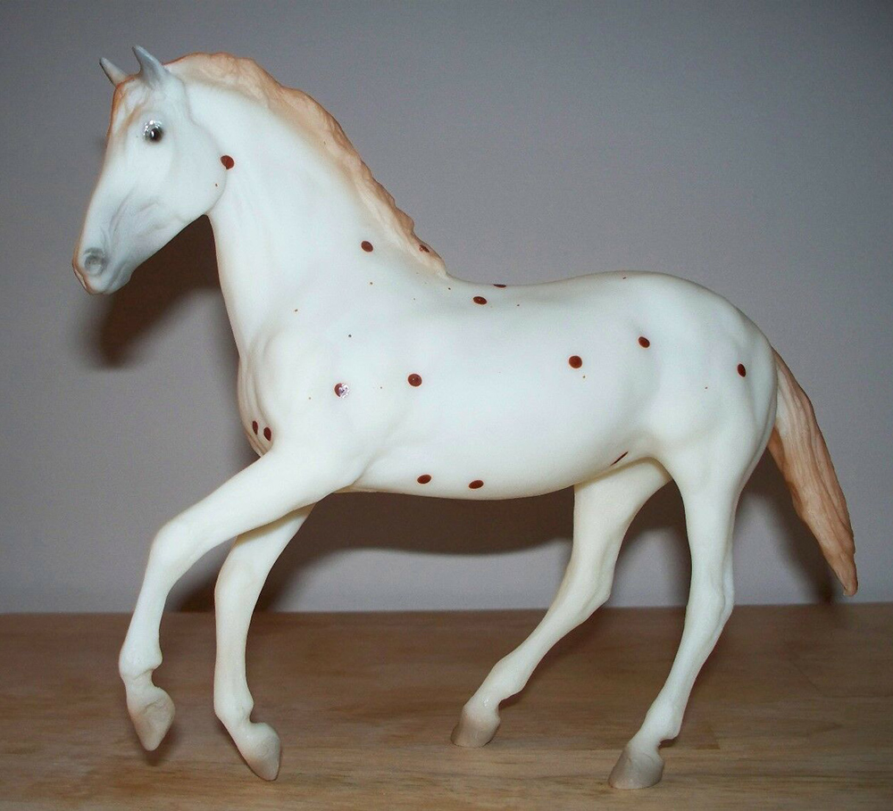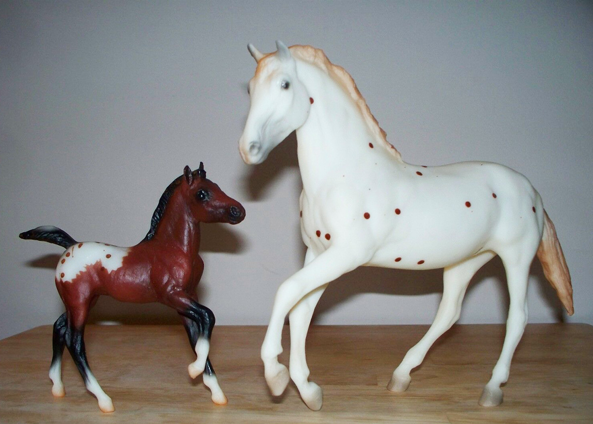 Matte chestnut leopard appaloosa; light chestnut mane and tail; includes ribbons – with Andalusian Foal
