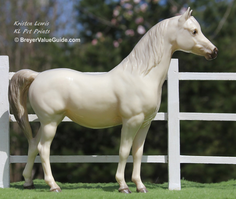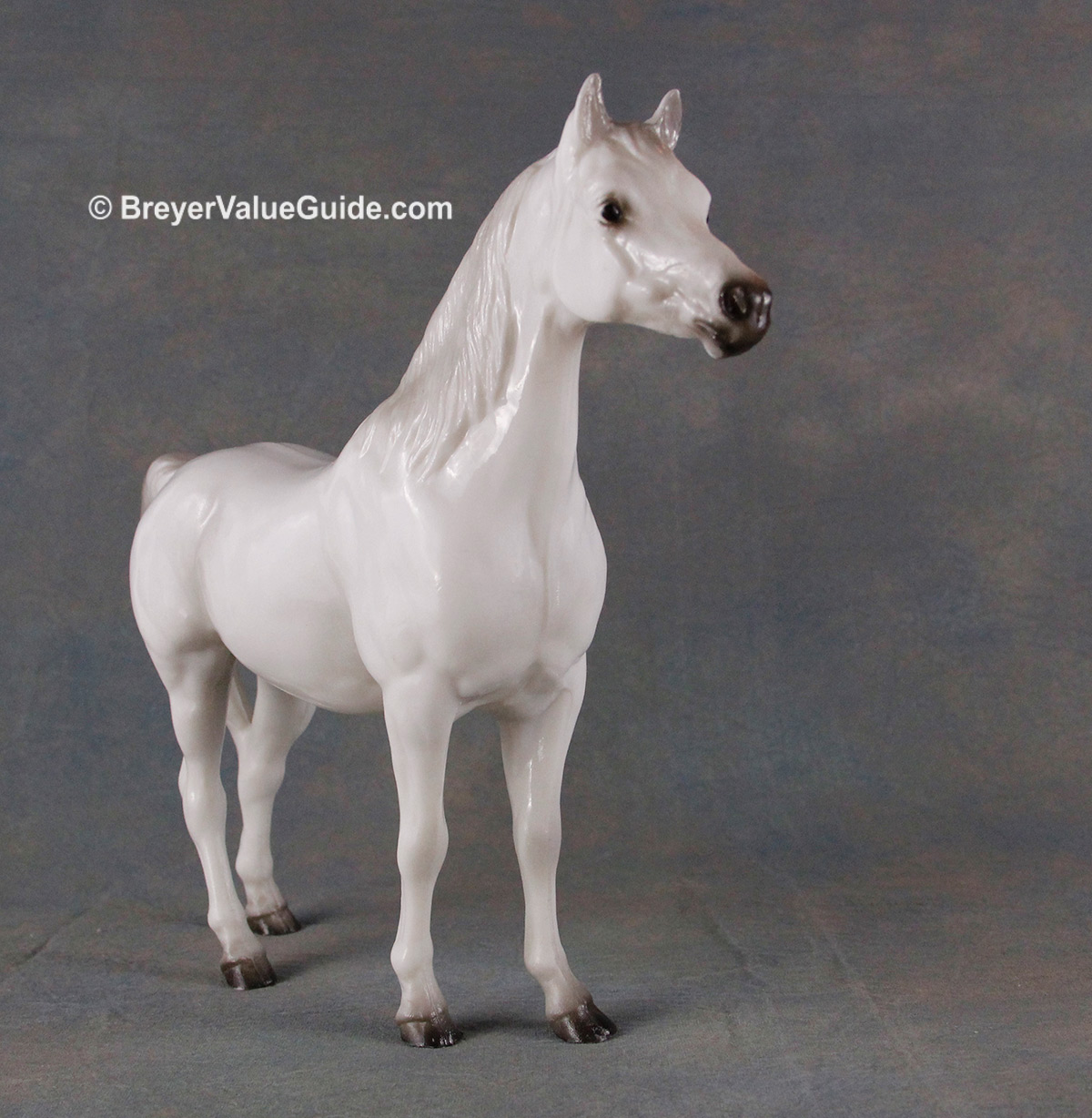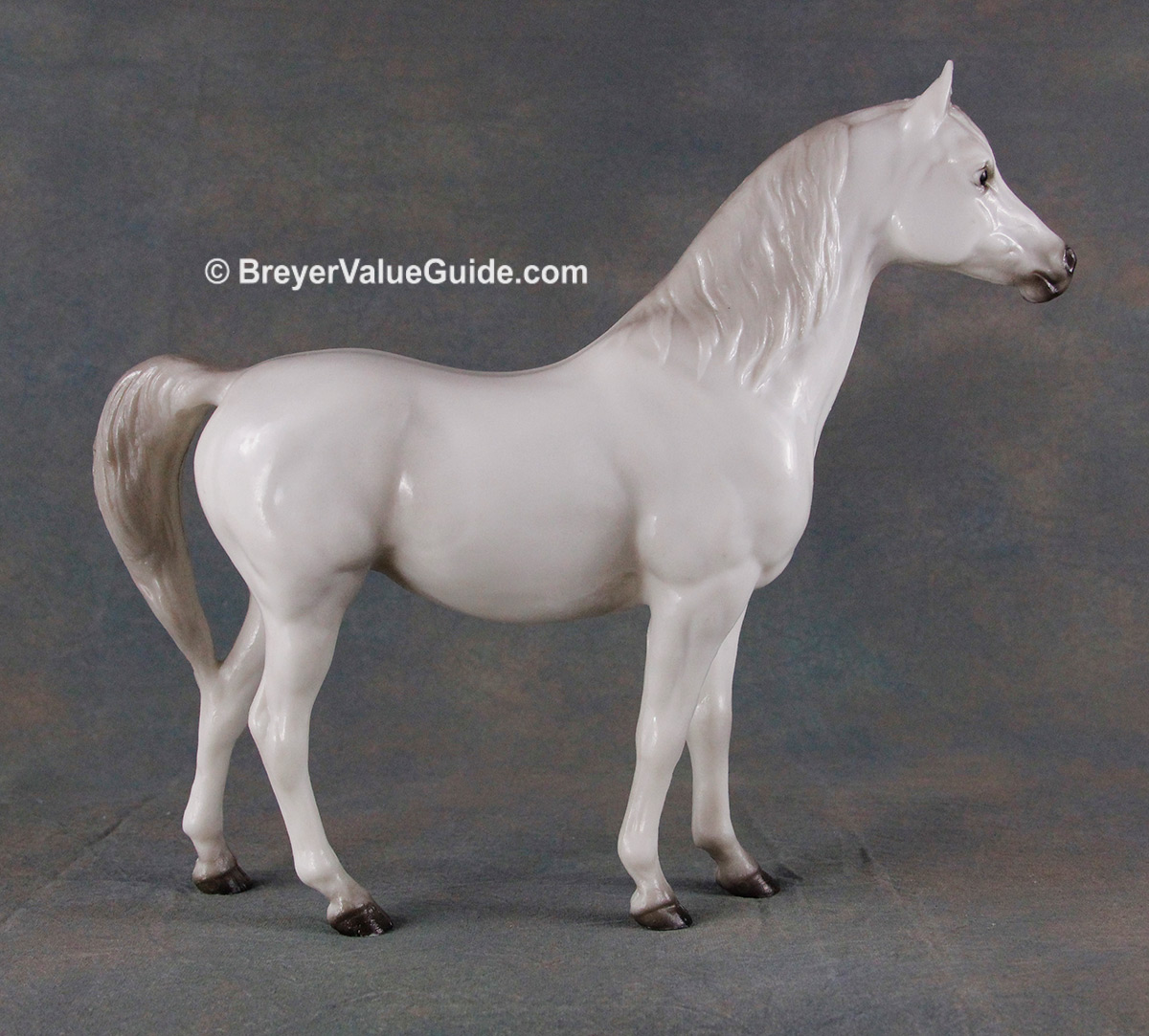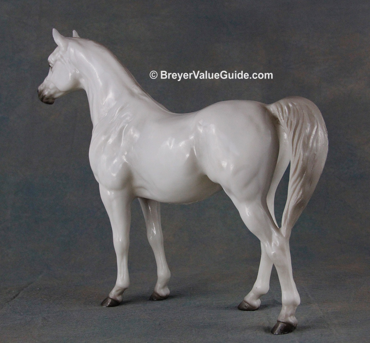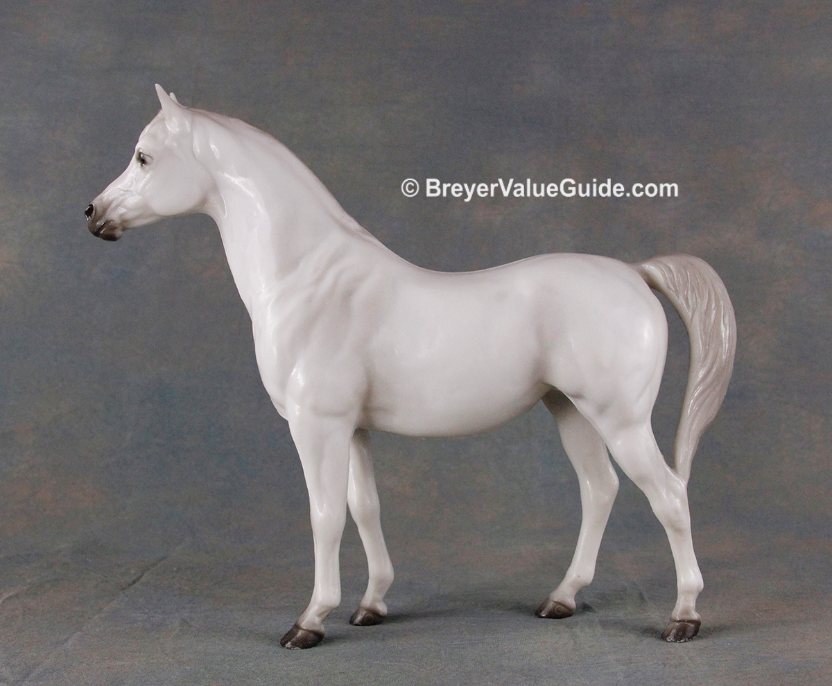 Glossy alabaster; grey mane; tail and hooves; Old Mold. Also released as #10 “Pride and Joy” with glossy alabaster Proud Arabian Foal; #11 “Prince; Pride and Joy” with PAF and glossy alabaster Family Arabian Stallion; and #12 “Prince and Pride” with FAS.