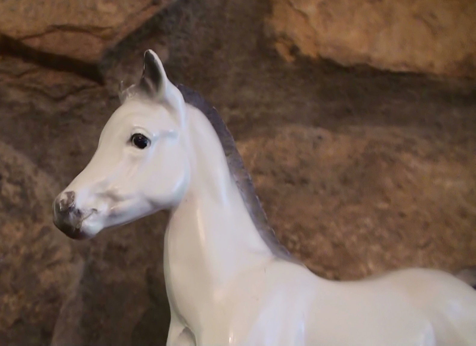 Matte alabaster; grey mane and tail. White basecoat chalky.