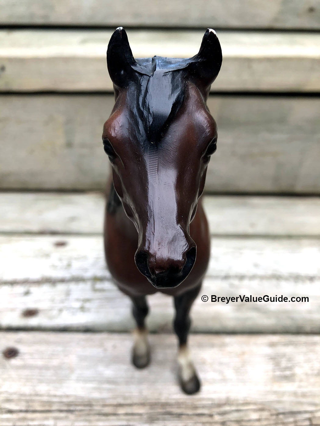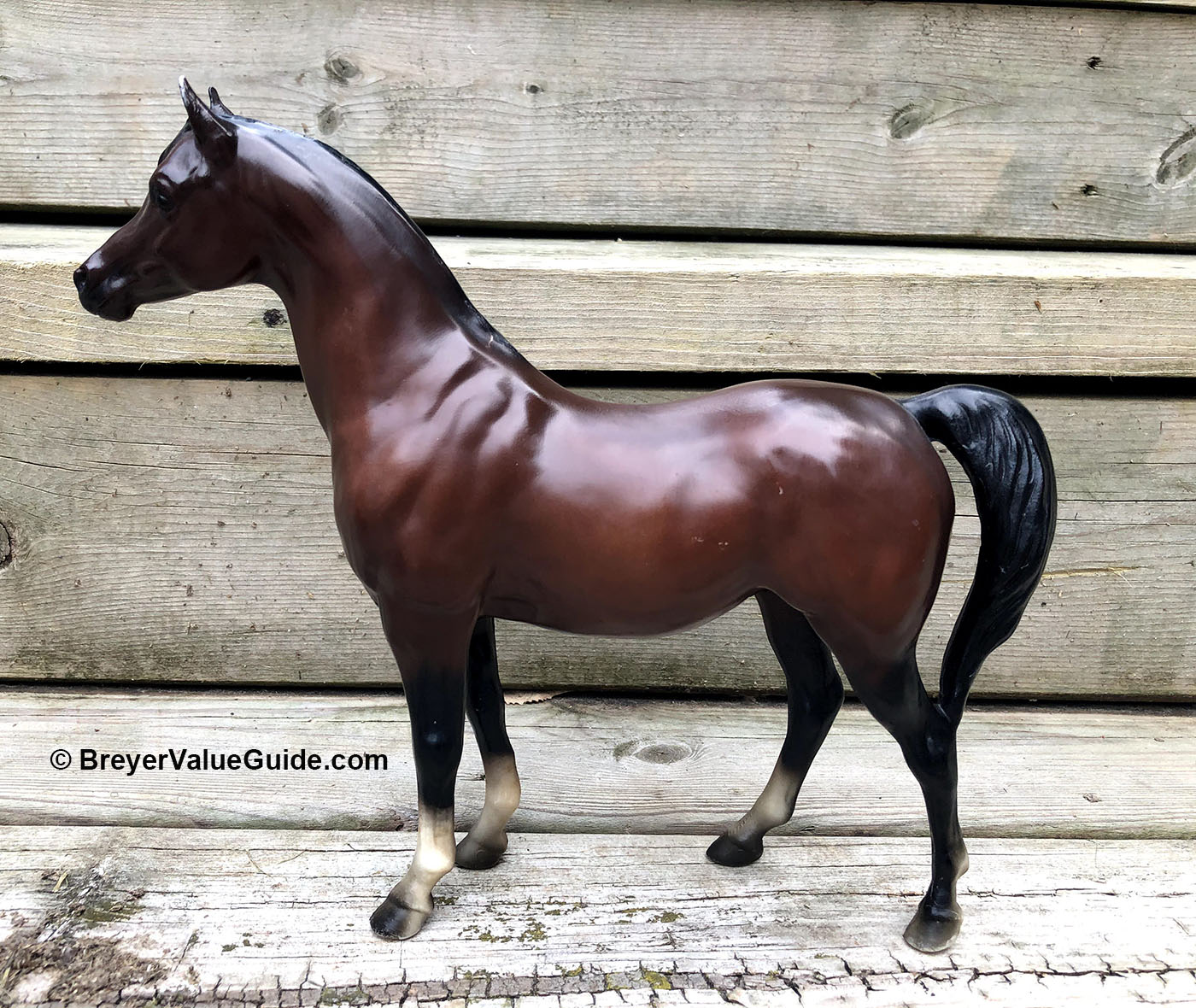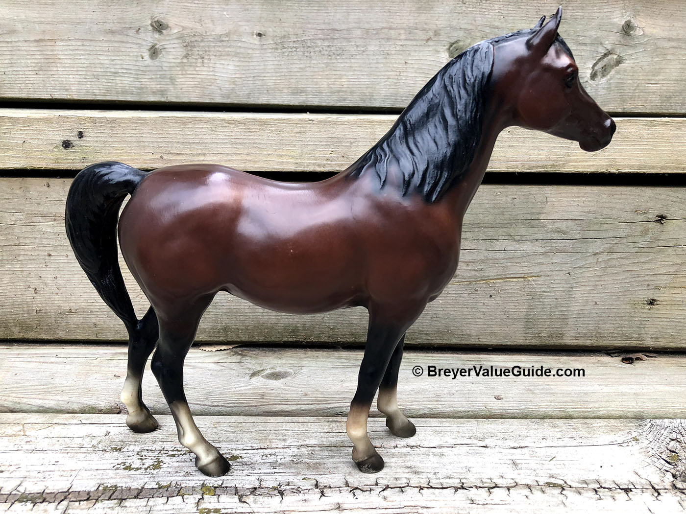 Matte or semigloss mahogany bay; solid face; black points; various socks