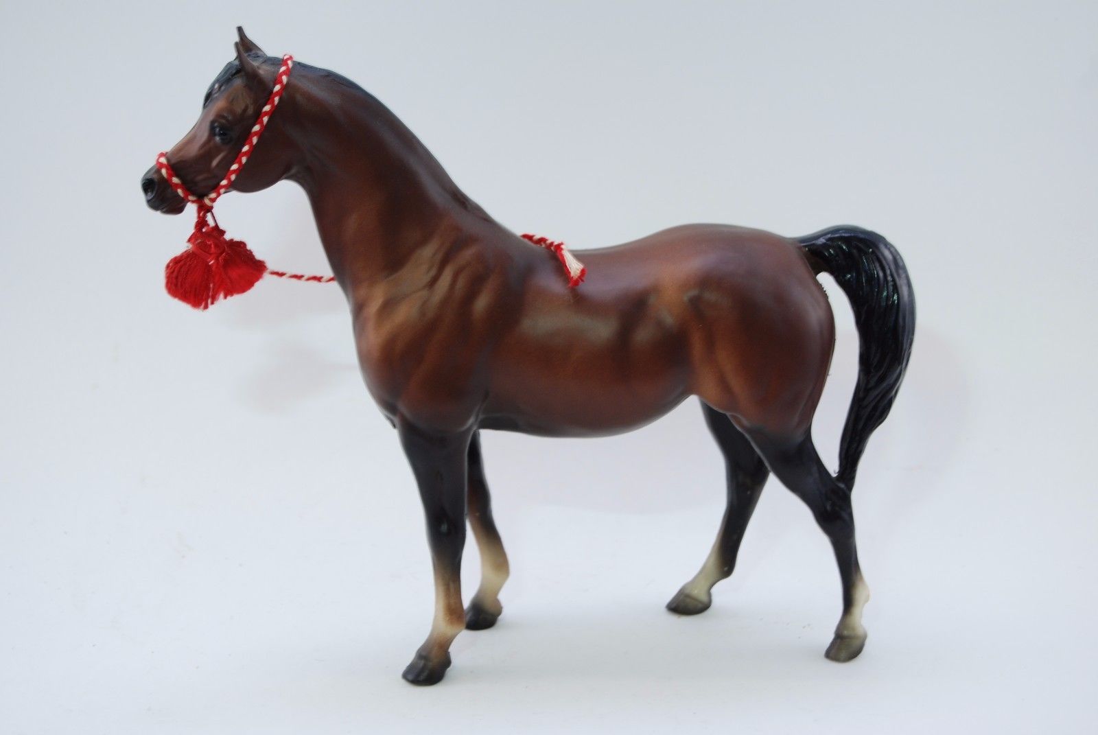 Matte mahogany bay; solid face; various stockings; same as #216 – with red and white braided halter and carrying case Valued as complete set with box.