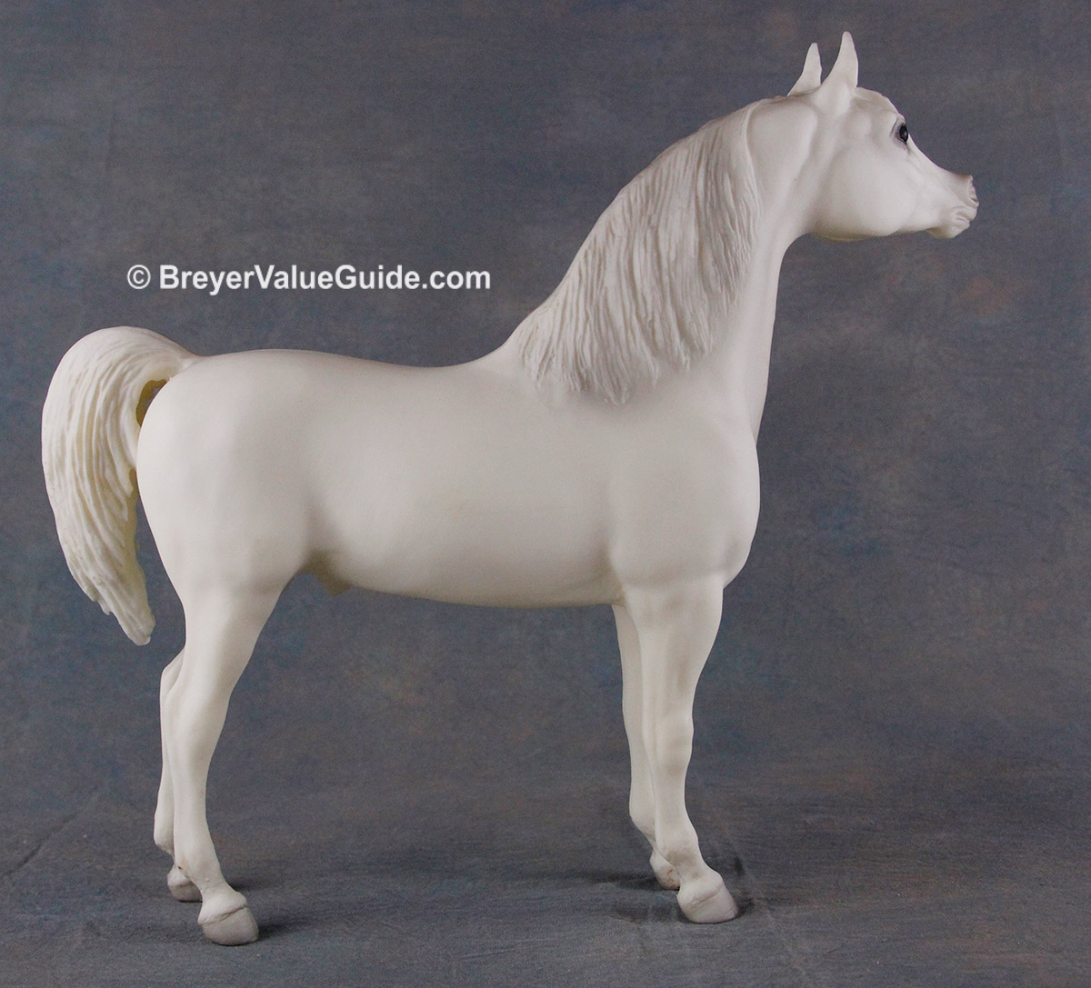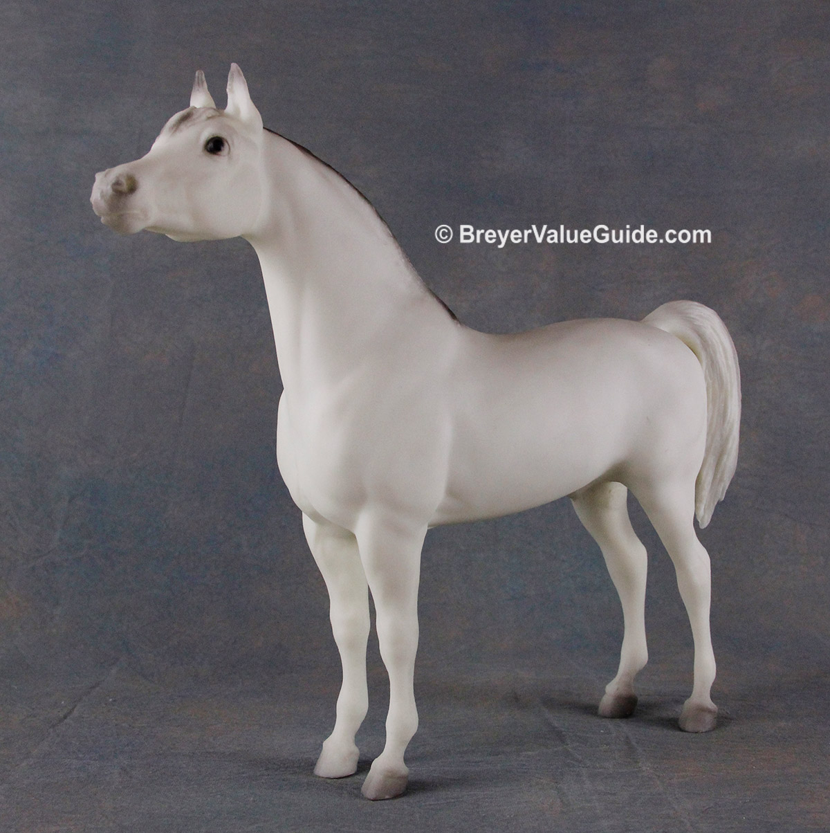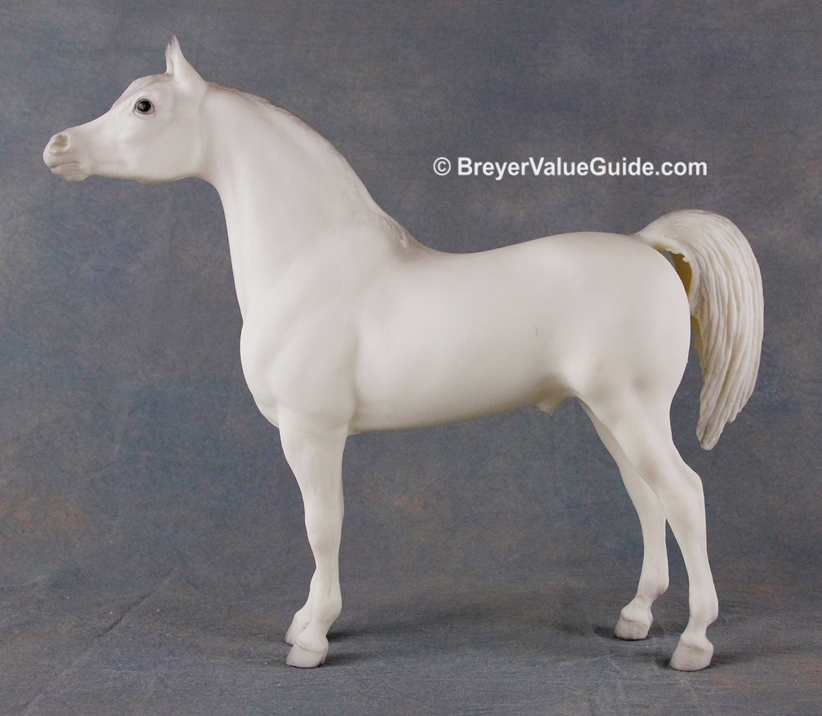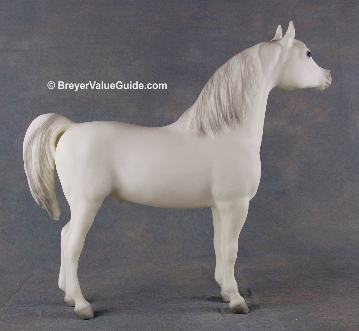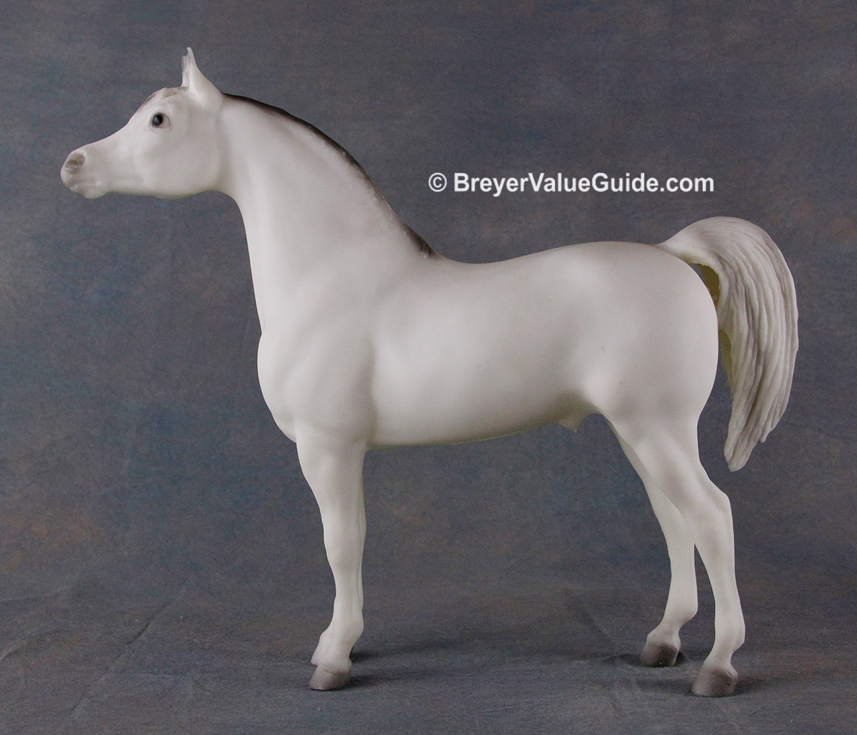 Matte alabaster; grey-striped mane and tail; grey hooves