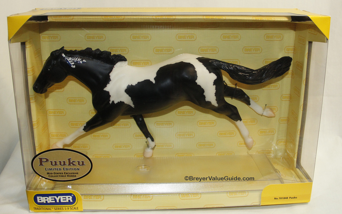 Matte black pinto; 4 socks; added feathers in mane; Mid-States SR; 1/3000