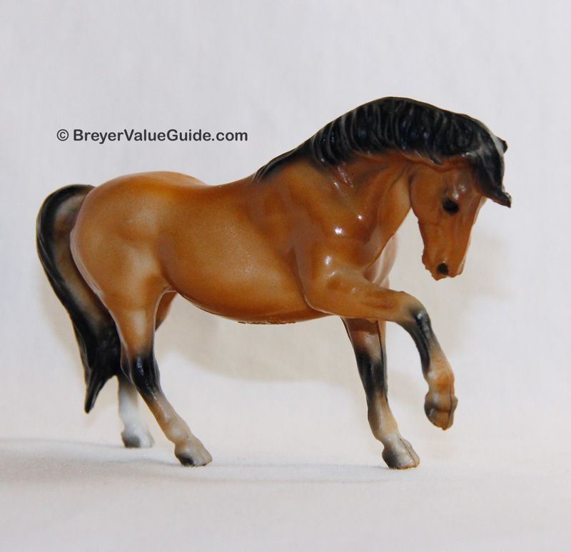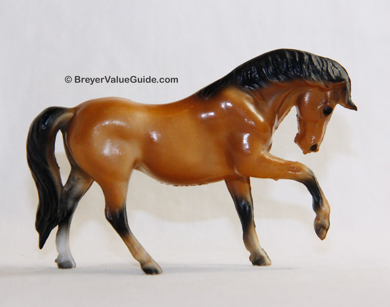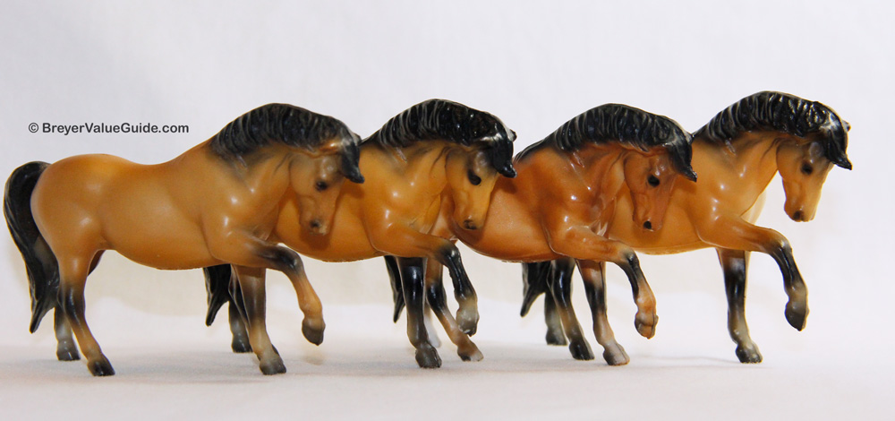 Matte buckskin; black points; some models don’t have black legs; socks; grey hooves