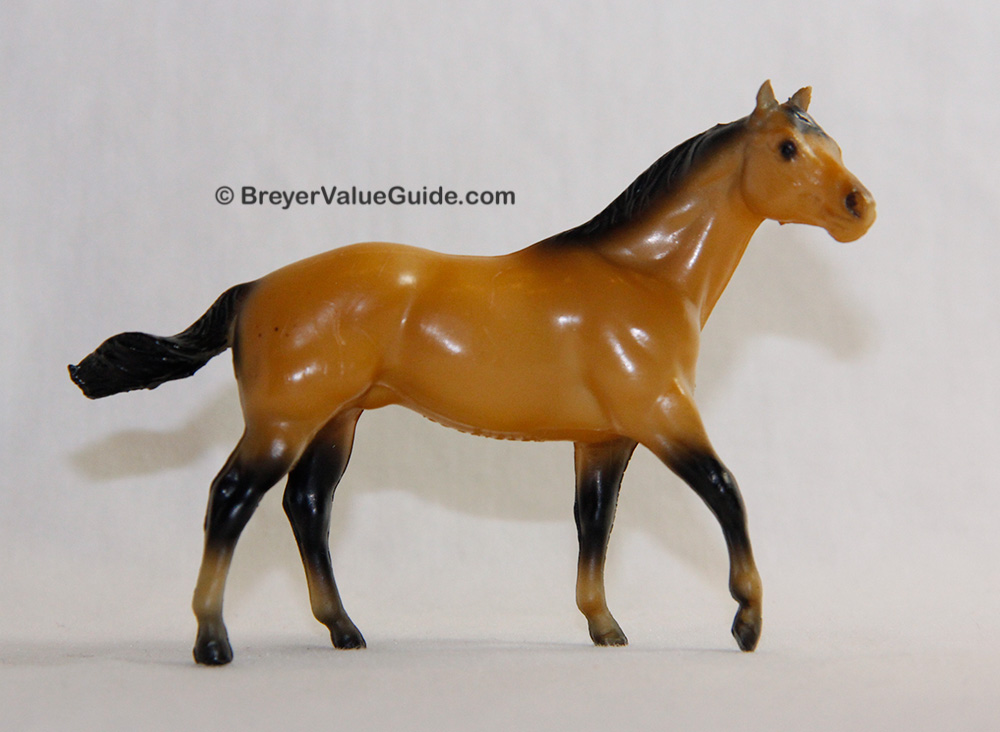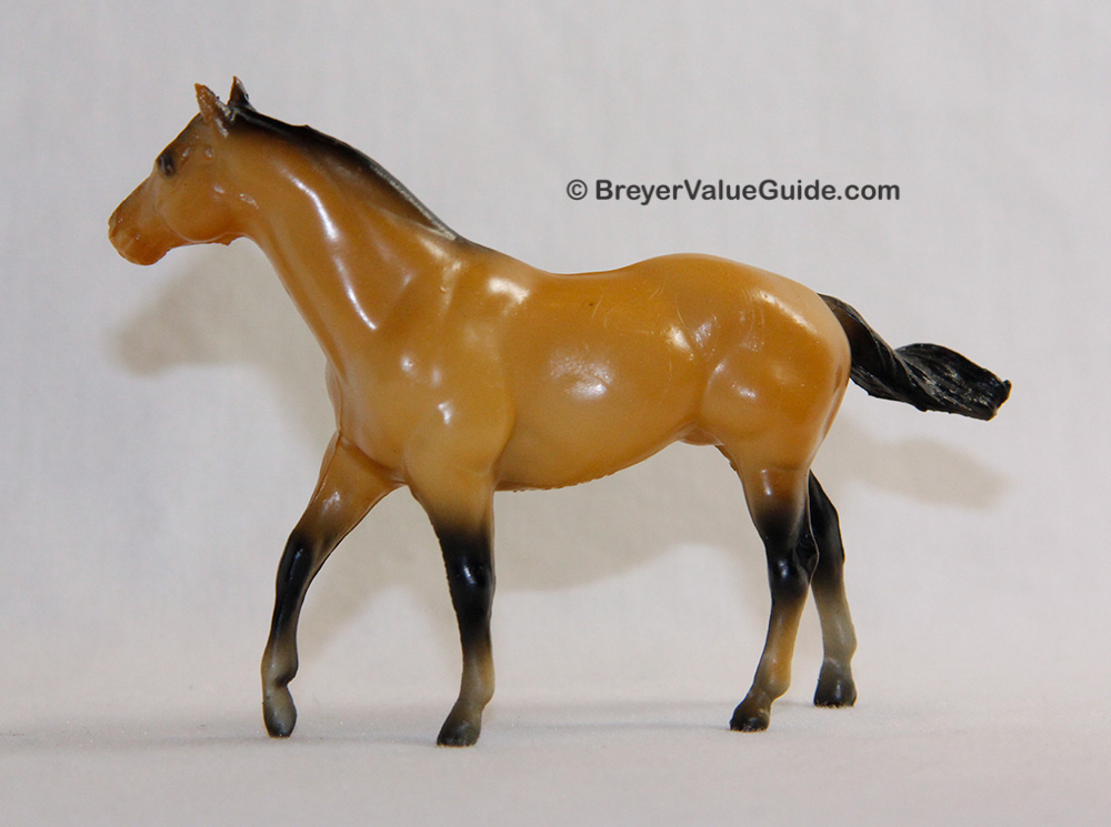 Matte to semi-gloss buckskin; black points; various socks