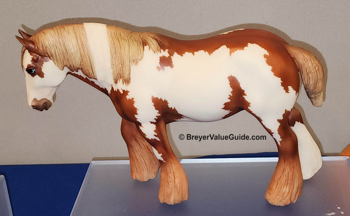 Matte chestnut overo pinto, white face, 1 hind sock, Hoofbeats & Maple Treats Event SR, 1/40